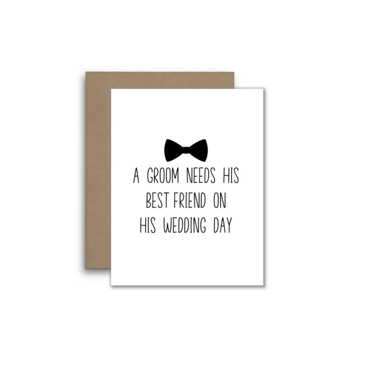 Mark the big day with this “A Groom Needs His Best Friend on His Wedding Day” greeting card — the perfect way to invite, thank, or honor a best man or groomsman.