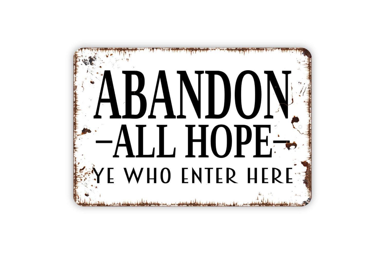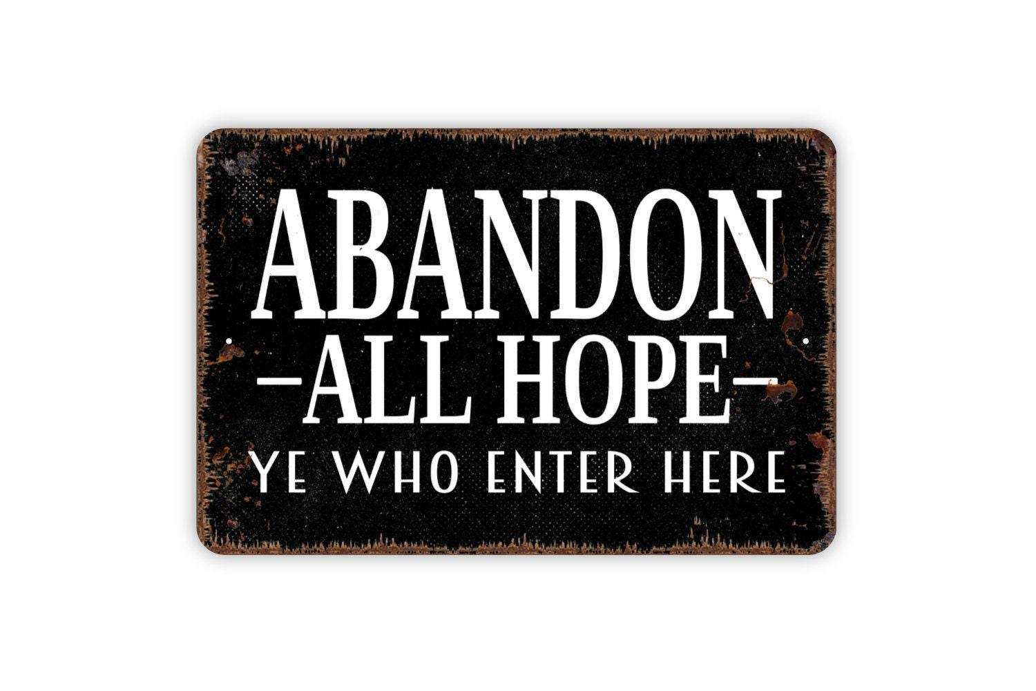Abandon All Hope Ye Who Enter Here Sign | Funny Gothic Metal Sign or Vinyl Sticker | Halloween, Haunted House, or Spooky Wall Decor