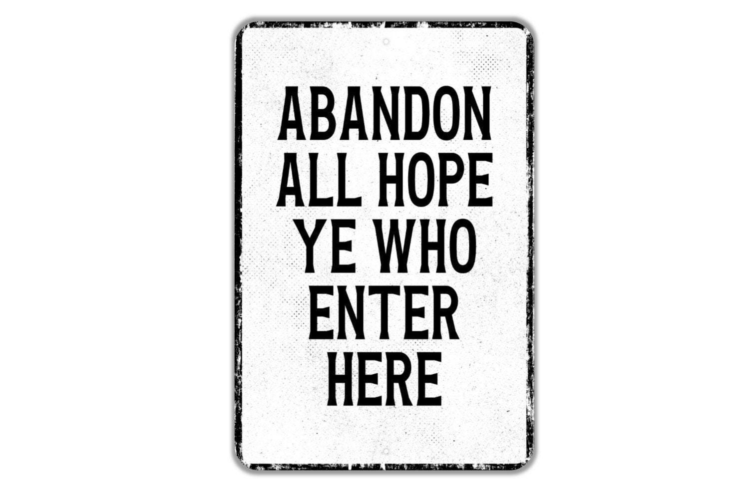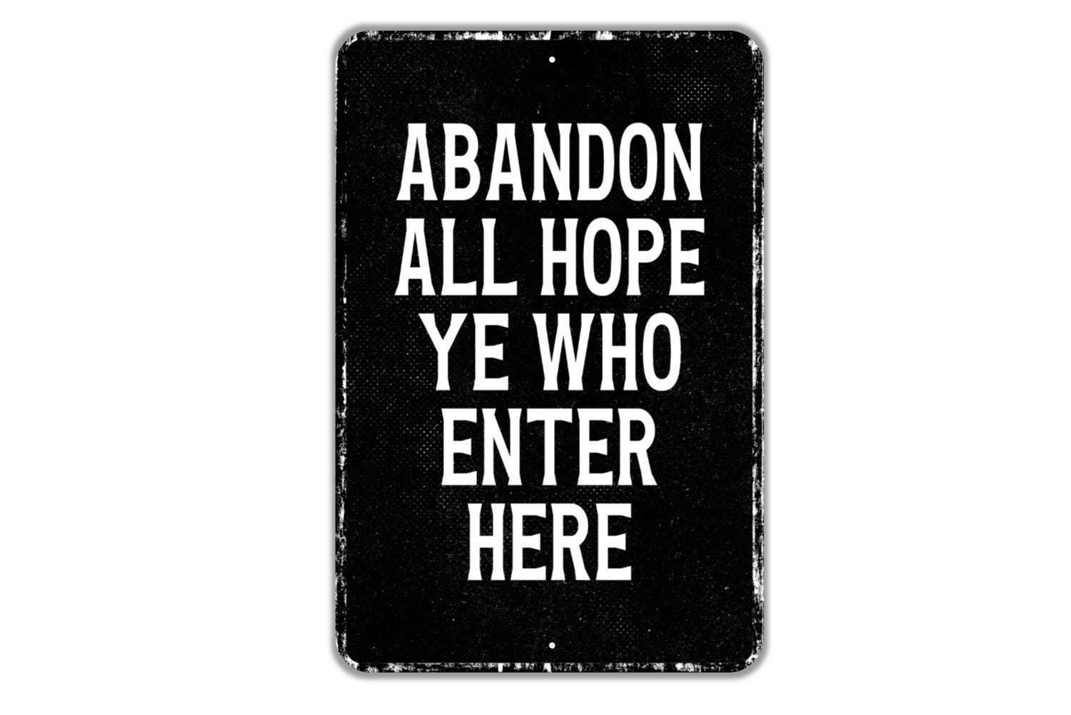Abandon All Hope Ye Who Enter Here Sign Metal Wall Art or Vinyl Sticker for Haunted House, Halloween Decor, Gothic Home, Spooky Wall Sign