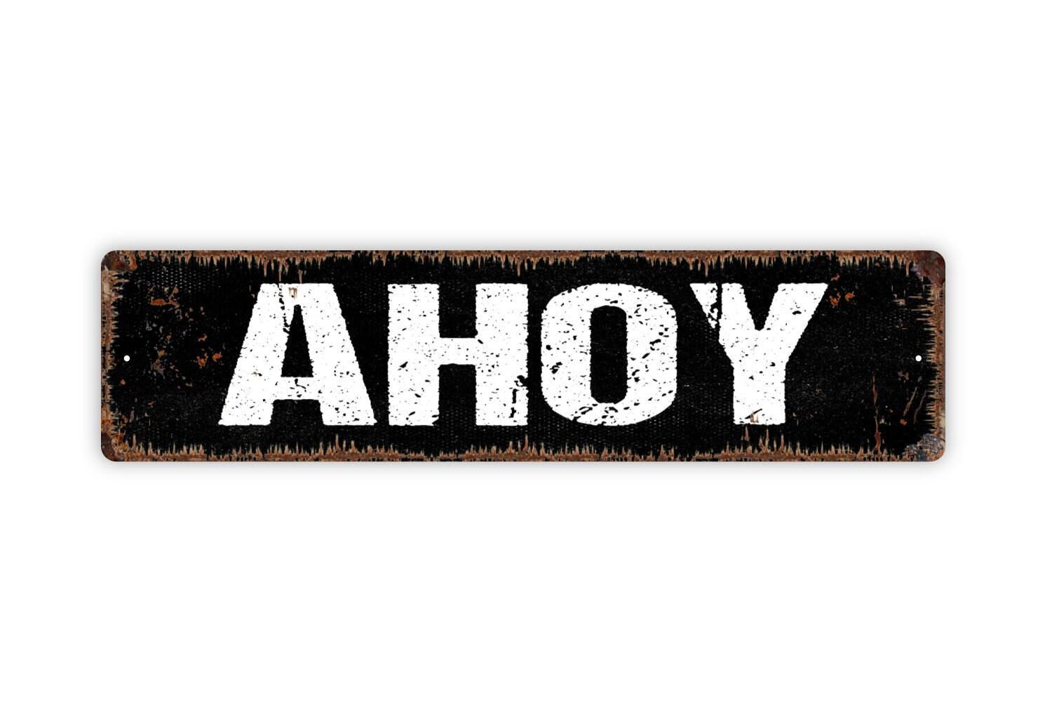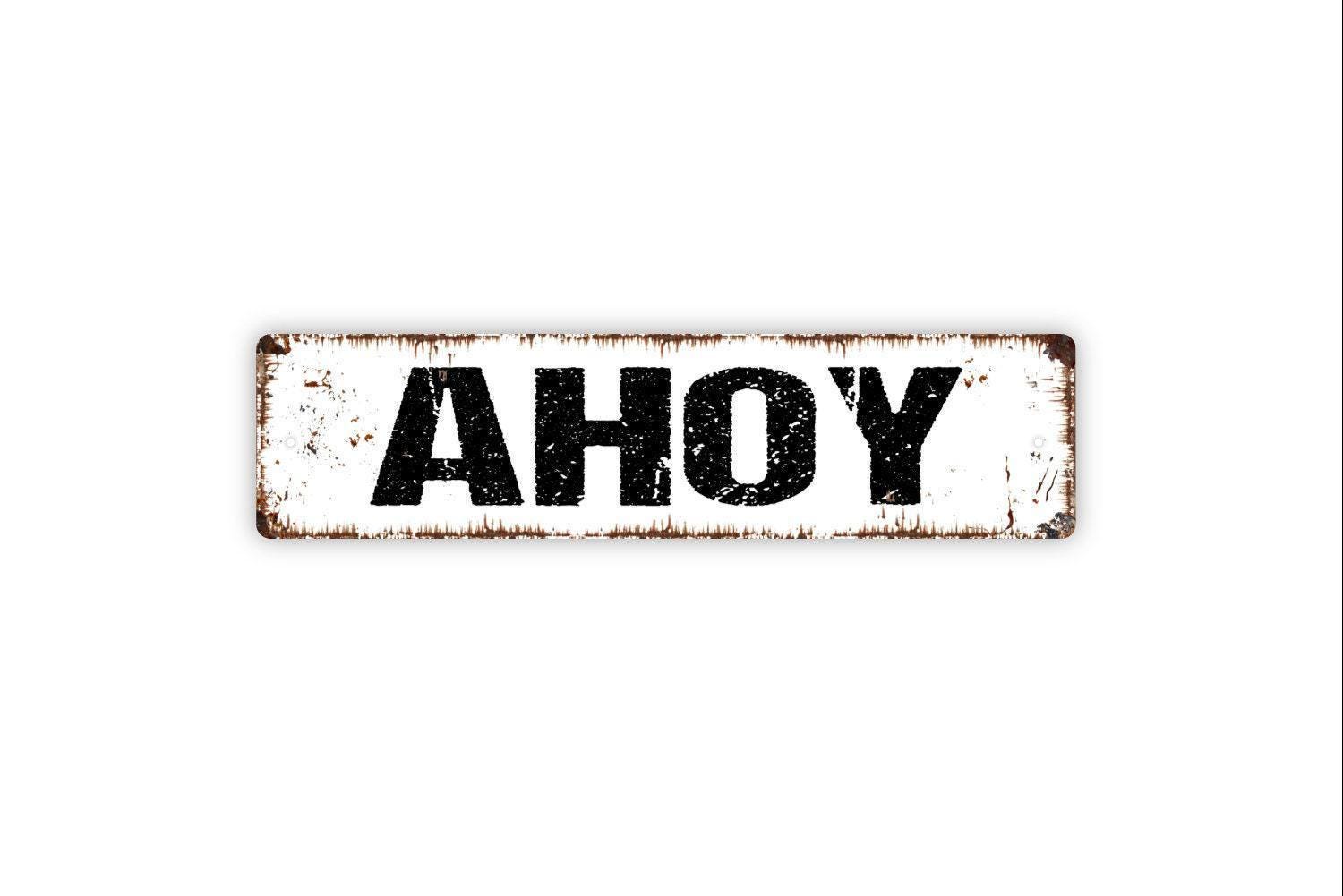 Ahoy Sign - Nautical Pirate Vinyl Sticker Or Metal Street Sign or Door Name Plate Plaque