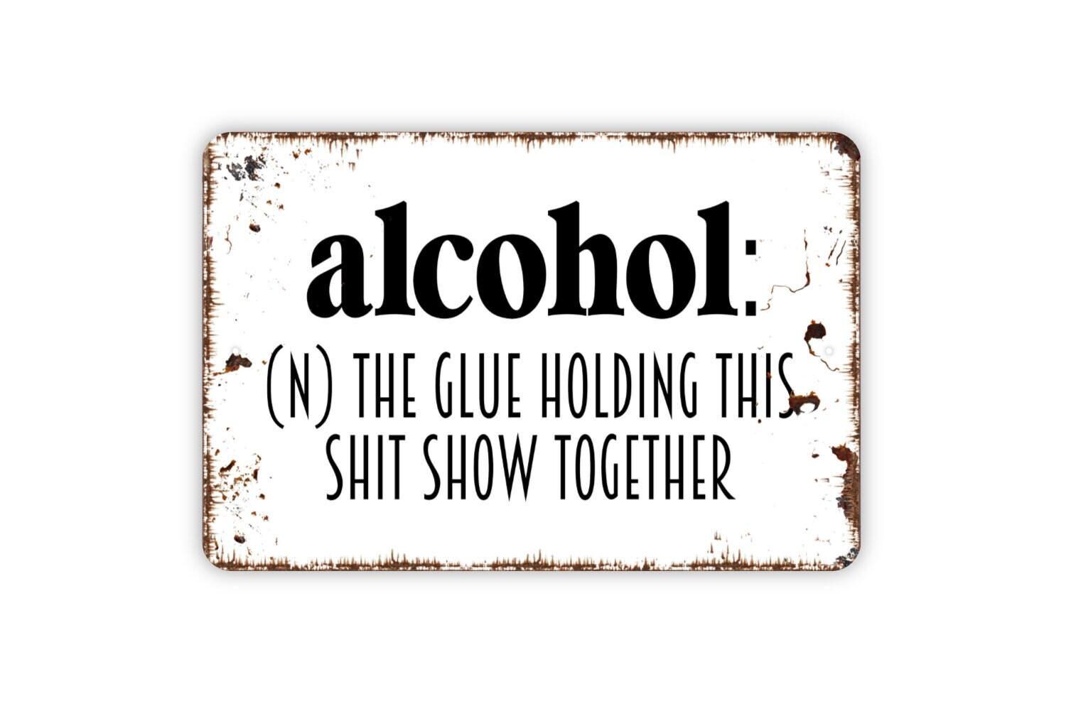Alcohol Definition The Glue Holding This Shit Show Together Sign - Funny Metal Indoor or Outdoor Wall Art