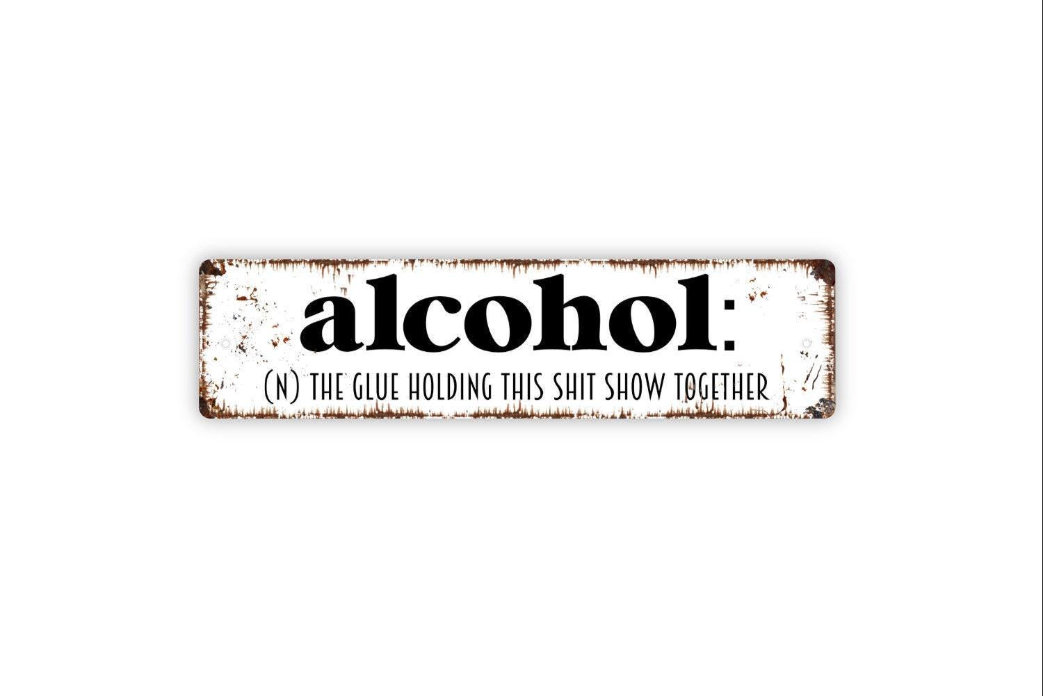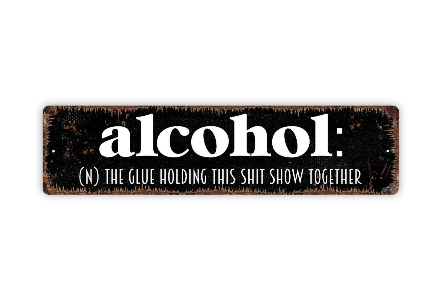 Alcohol The Glue Holding This Shit Show Together Sign - Vinyl Sticker Or Metal Street Sign or Door Name Plate Plaque