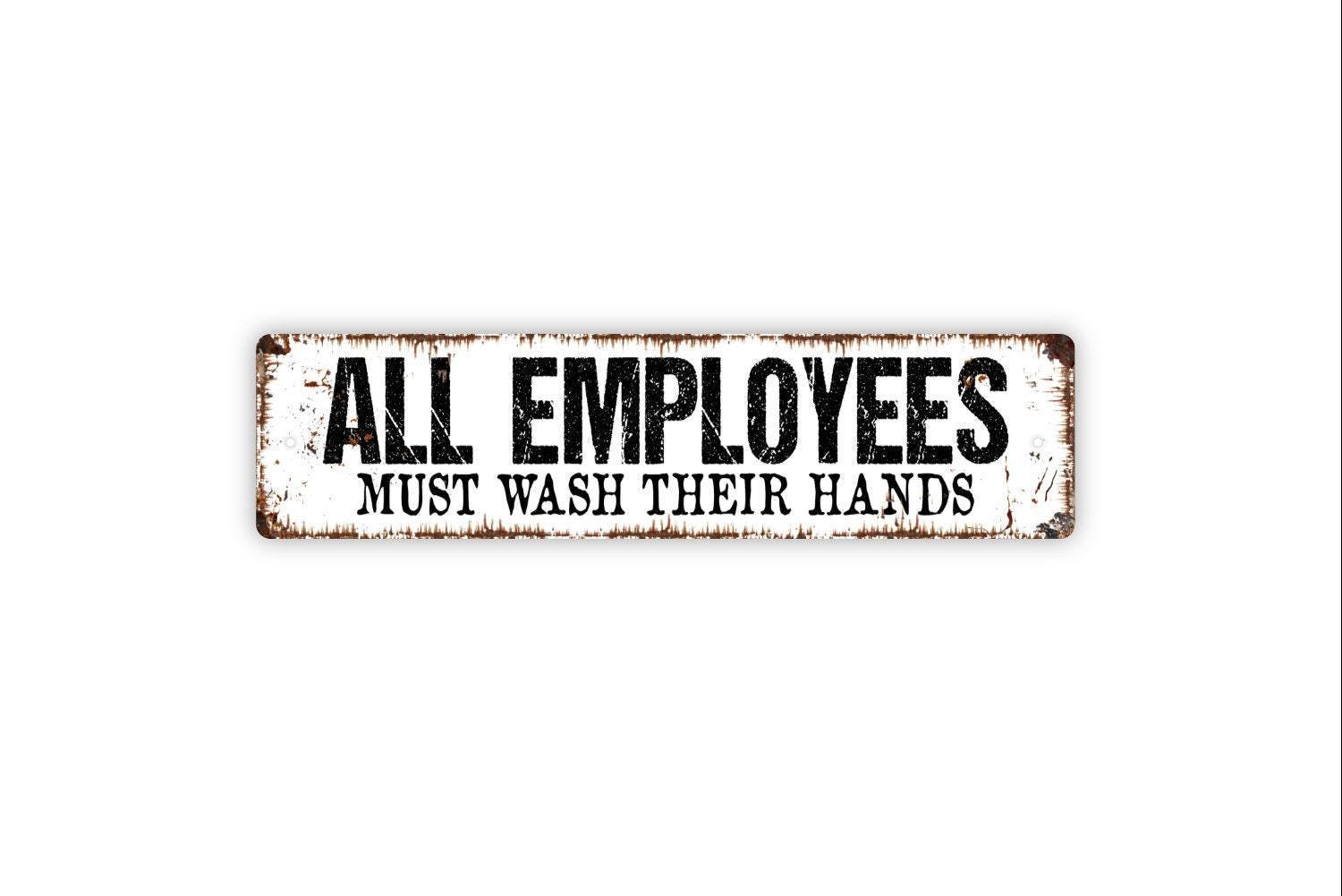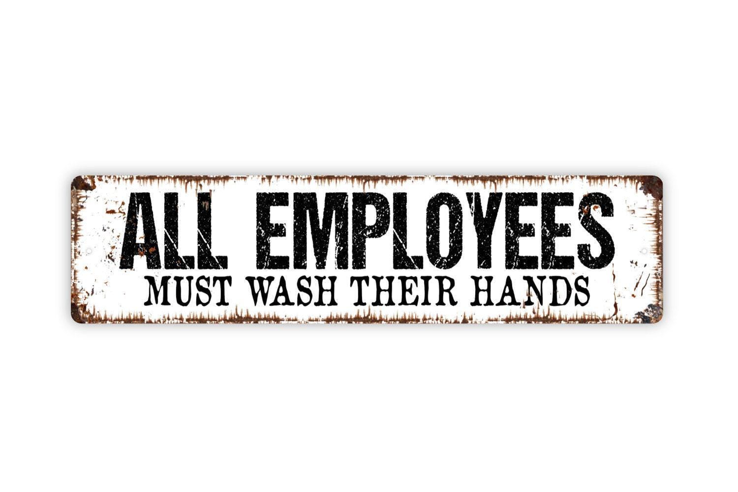 All Employees Must Wash Their Hands Sign - Food Service Vinyl Sticker Or Metal Street Sign or Door Name Plate Plaque
