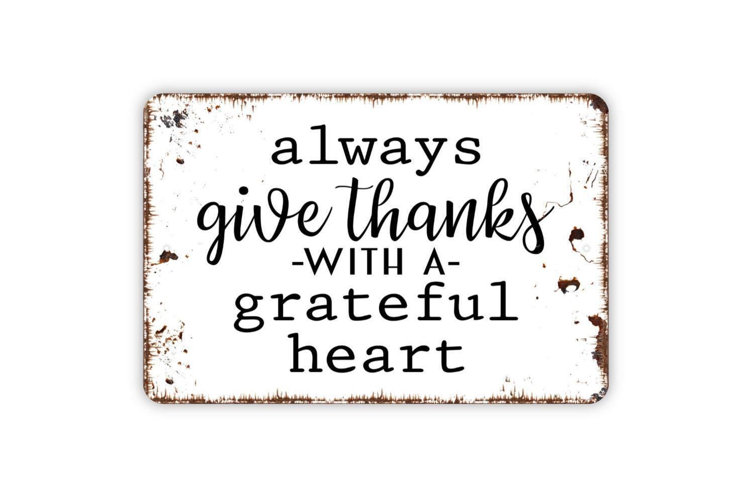 Always Give Thanks With A Grateful Heart Sign - Metal Indoor or Outdoor Wall Art