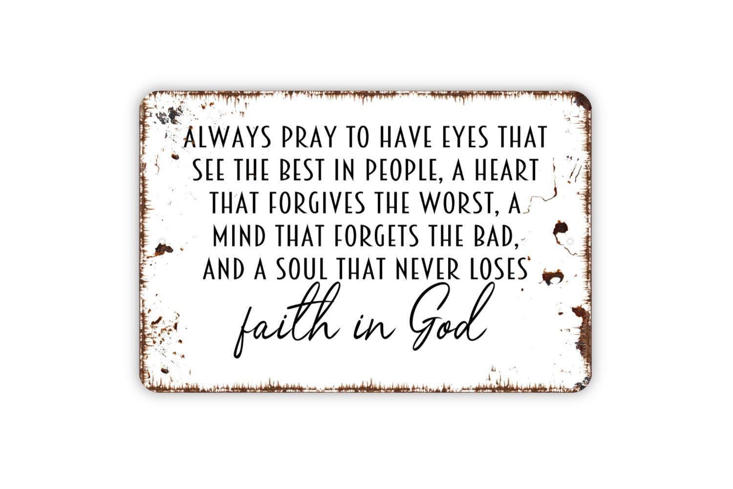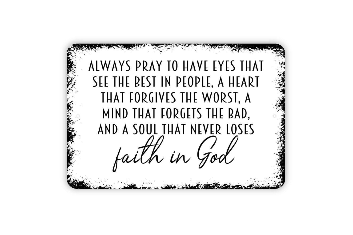 Always Pray To Have Eyes That See The Best In People Sign - Affirmation Metal Indoor or Outdoor Wall Art