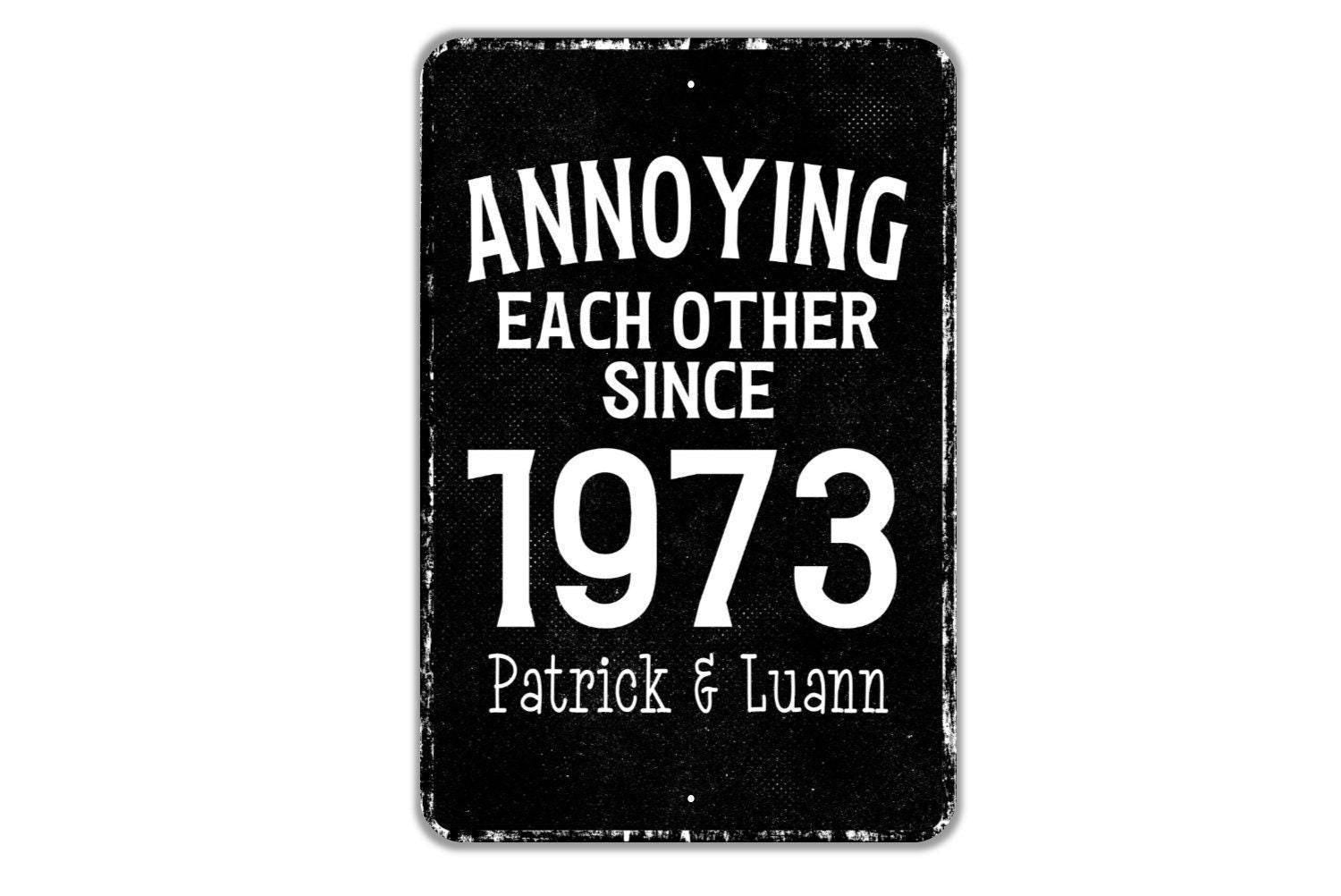 Celebrate your relationship with humor using this “Annoying Each Other Since [Anniversary Year]” personalized metal sign—the perfect blend of love and laughs.