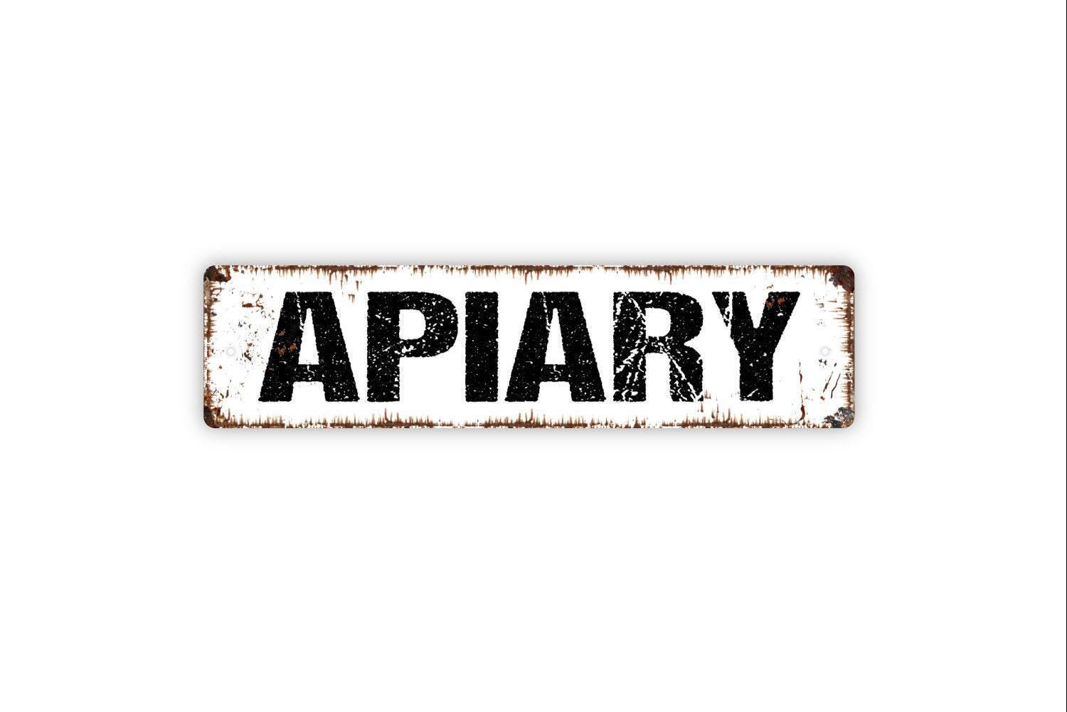 Apiary Sign | Beekeeping Wall Decor | Rustic Farmhouse Bee Hive Honey Yard Barn Sign | Metal Sign or Vinyl Sticker