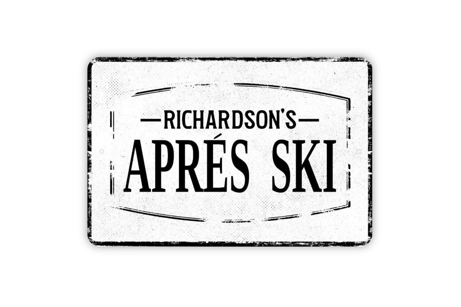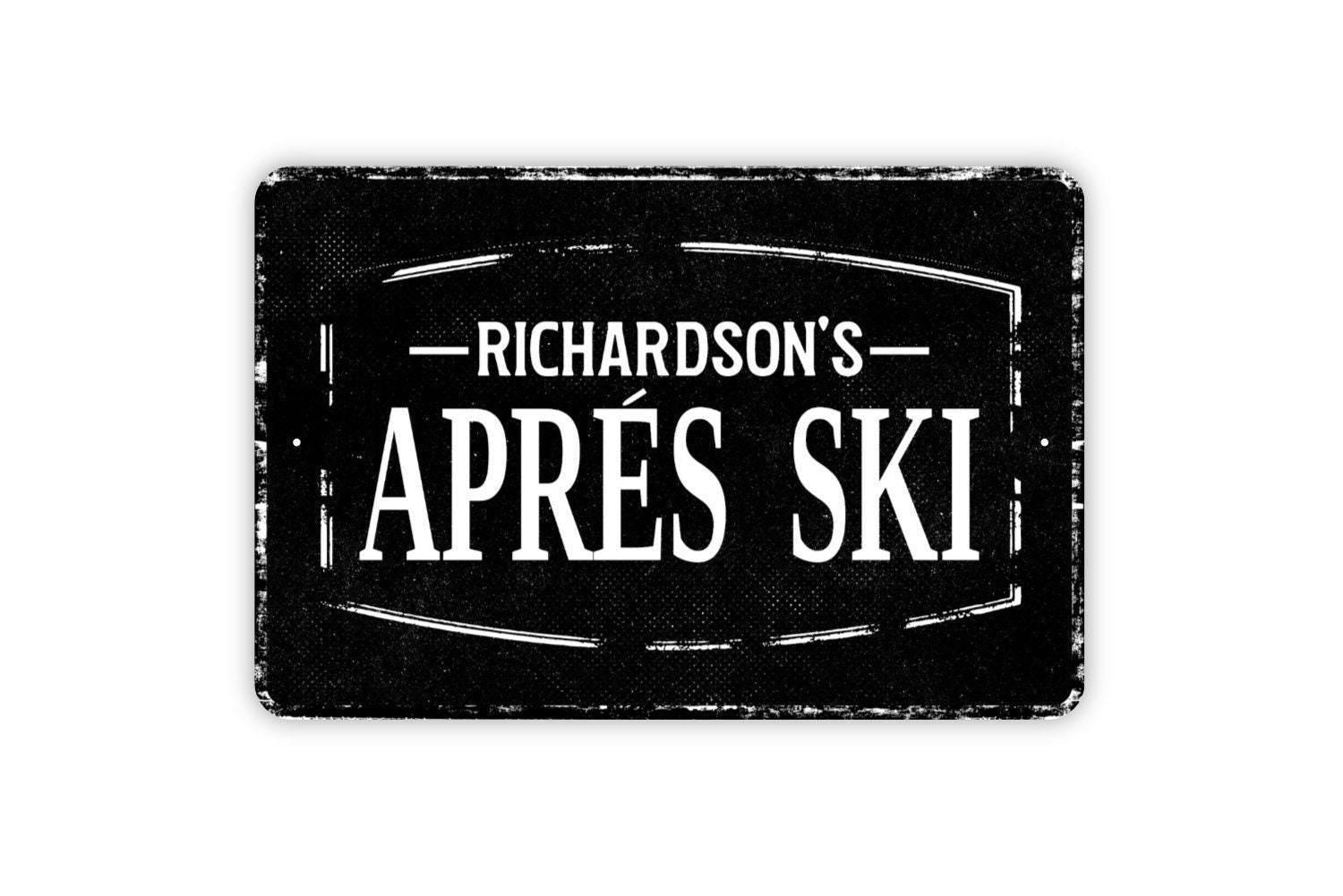 Après Ski Personalized Sign With Name | Rustic Ski Lodge Metal Sign or Vinyl Sticker | Custom Cabin, Chalet, Bar, Mountain Retreat Decor