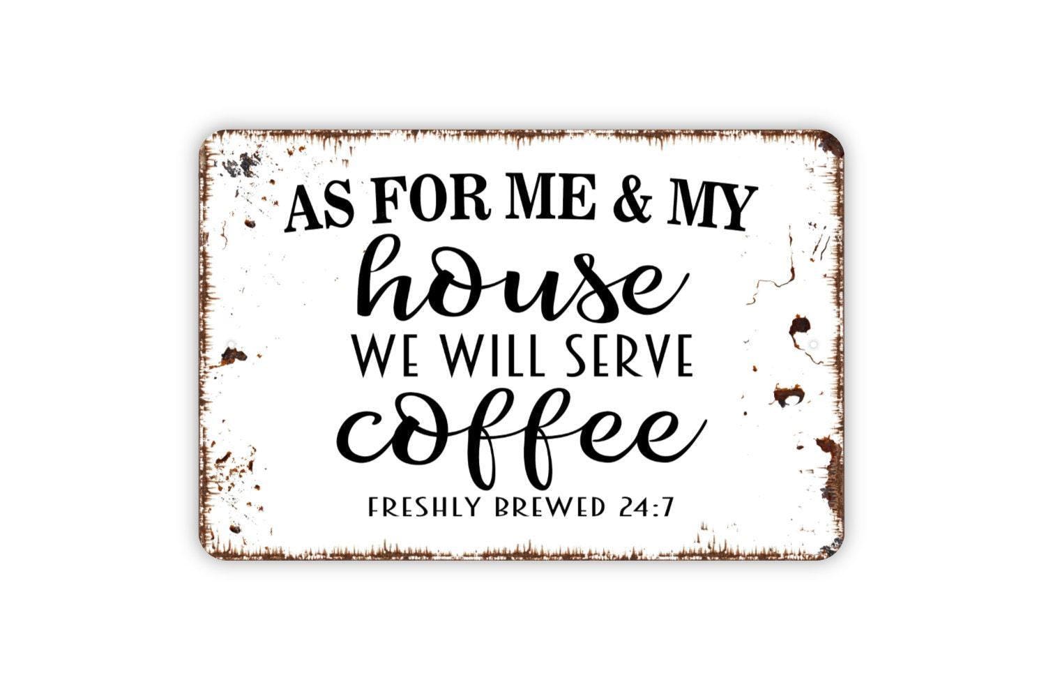 As For Me And My House We Will Serve Coffee Freshly Brewed 24 7 Sign - Metal Indoor or Outdoor Wall Art