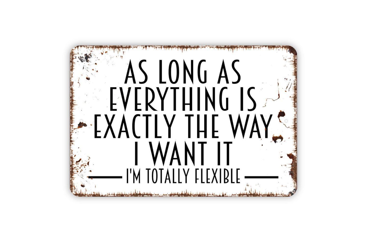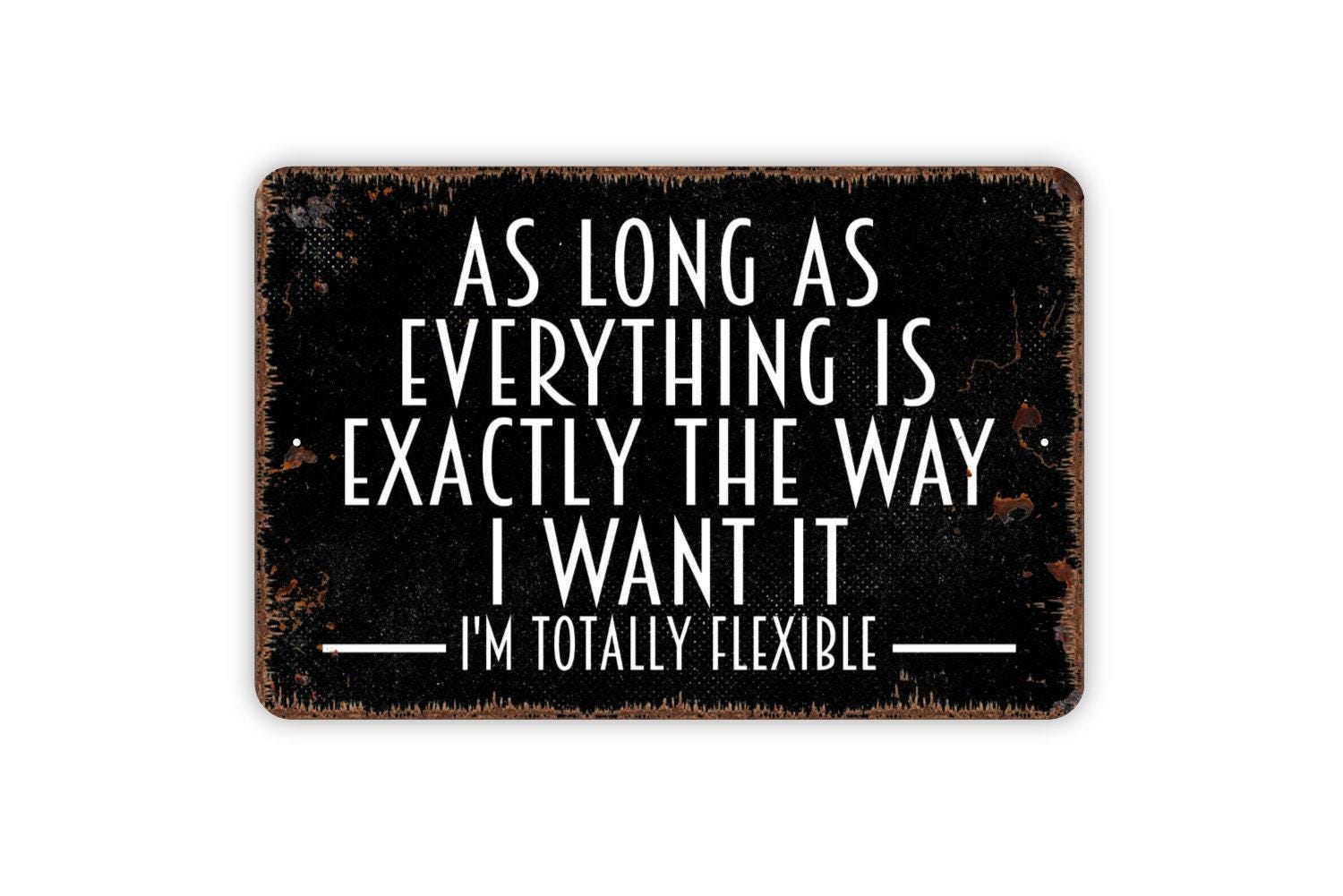 As Long As Everything Is Exactly The Way I Want It I'm Totally Flexible Sign - Funny Metal Indoor or Outdoor Wall Art