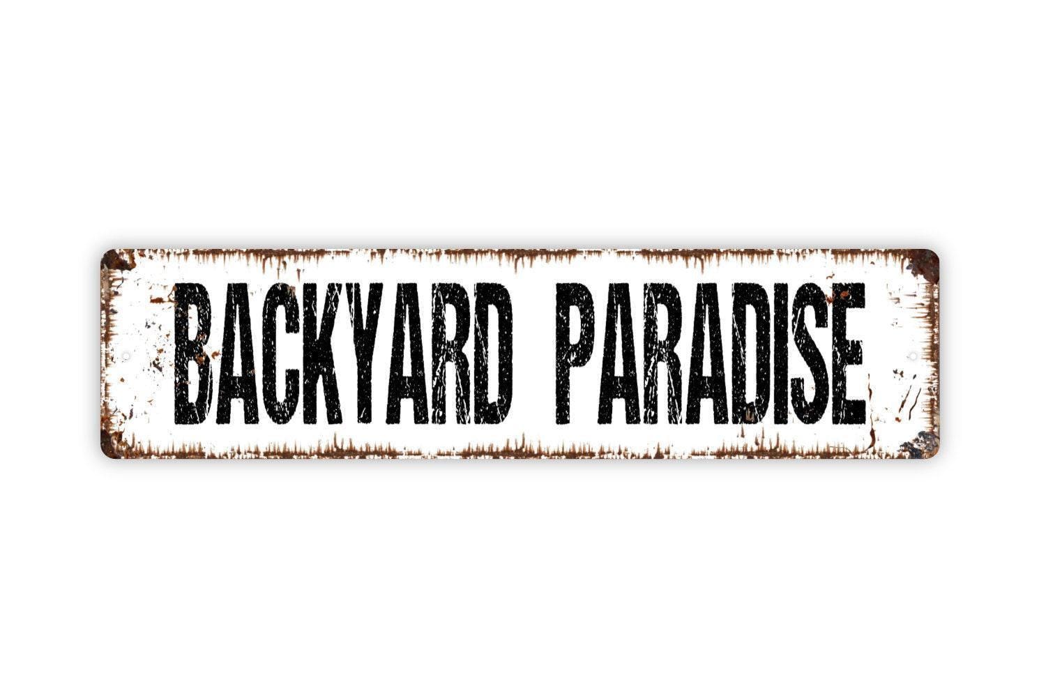 Backyard Paradise Sign - Vinyl Sticker Or Metal Street Sign or Door Name Plate Plaque