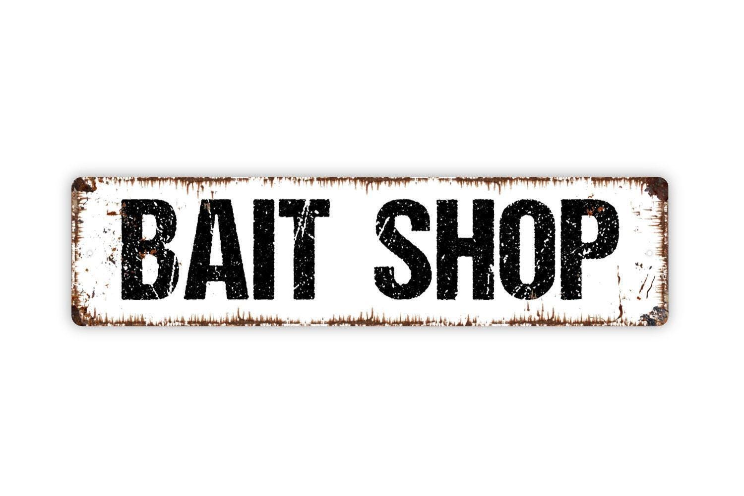 Bait Shop Sign - Vinyl Sticker Or Metal Street Sign or Door Name Plate Plaque