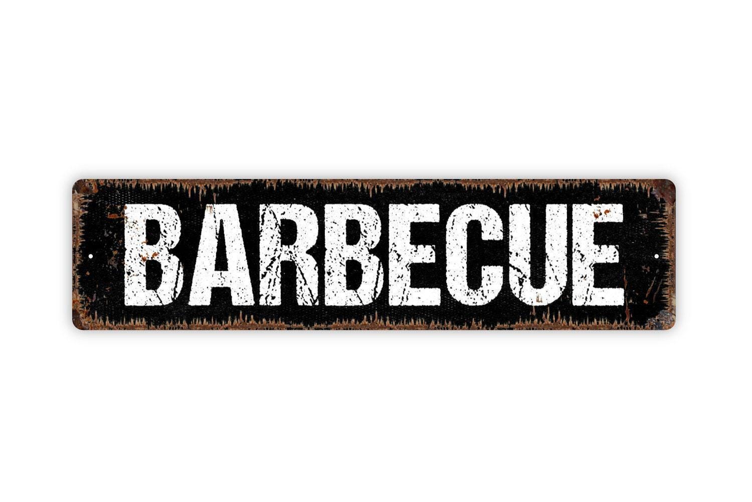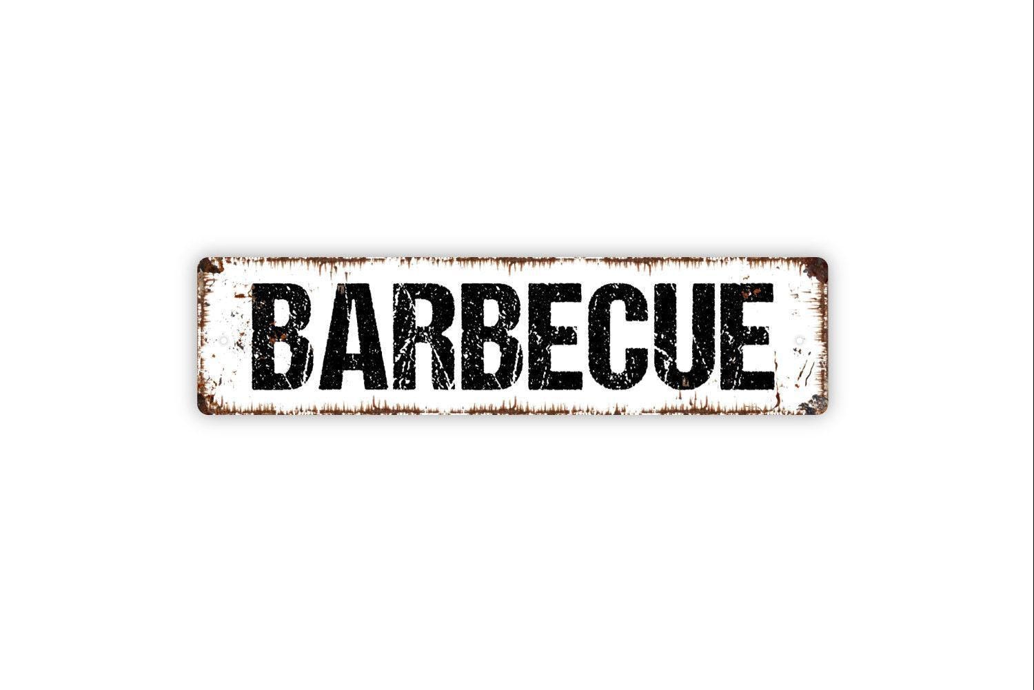 Barbecue Sign - BBQ Kitchen Grill Vinyl Sticker Or Metal Street Sign or Door Name Plate Plaque