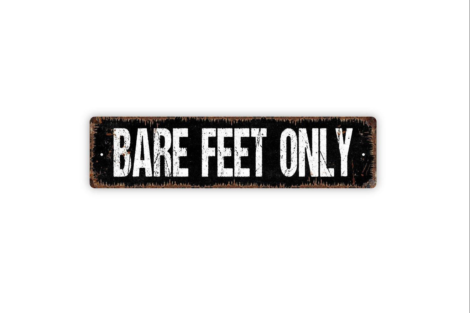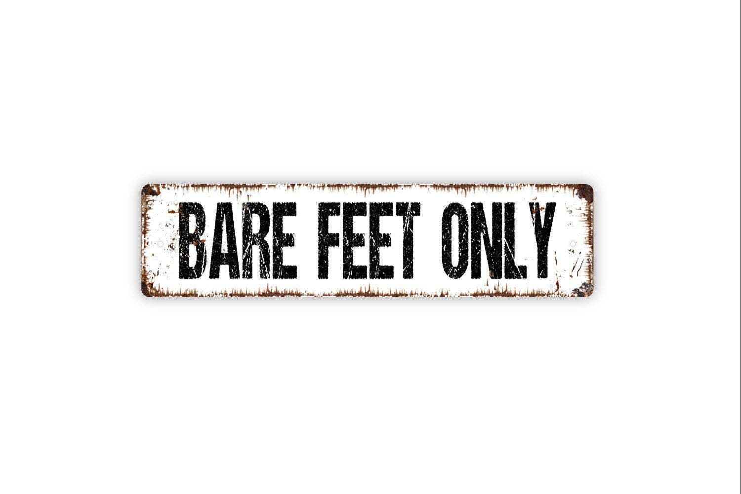 Bare Feet Only Sign - No Shoes No Sandals Vinyl Sticker Or Metal Street Sign or Door Name Plate Plaque