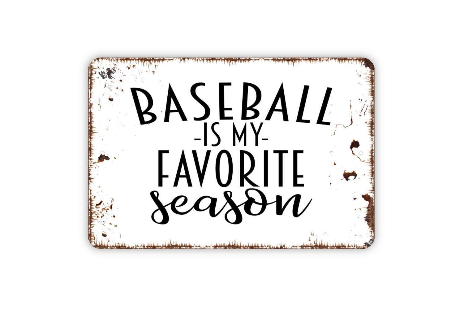 Baseball Is My Favorite Season Sign | Funny Sports Wall Decor for Game Room, Man Cave, or Bedroom | Metal Sign or Vinyl Sticker