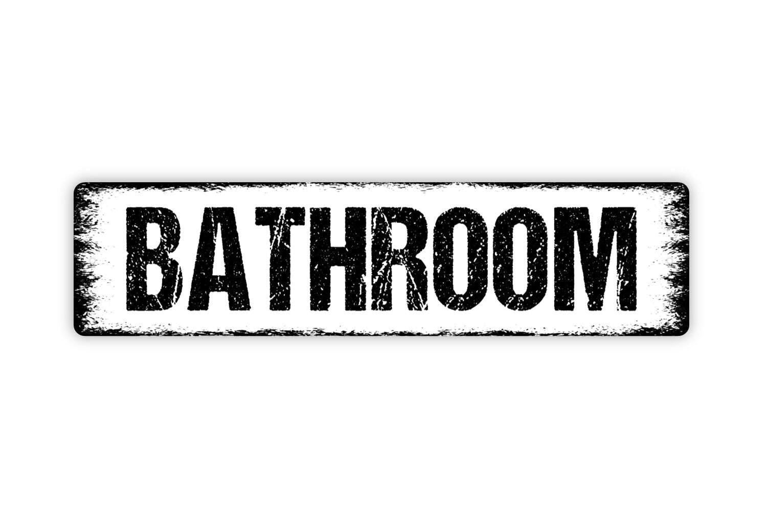 Bathroom Sign - Vinyl Sticker Or Metal Street Sign or Door Name Plate Plaque