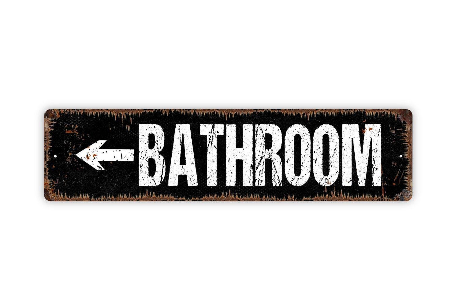 Bathroom With Arrow Sign | Restroom Directional Wall Sign | Metal Bathroom Sign or Vinyl Sticker for Home or Business
