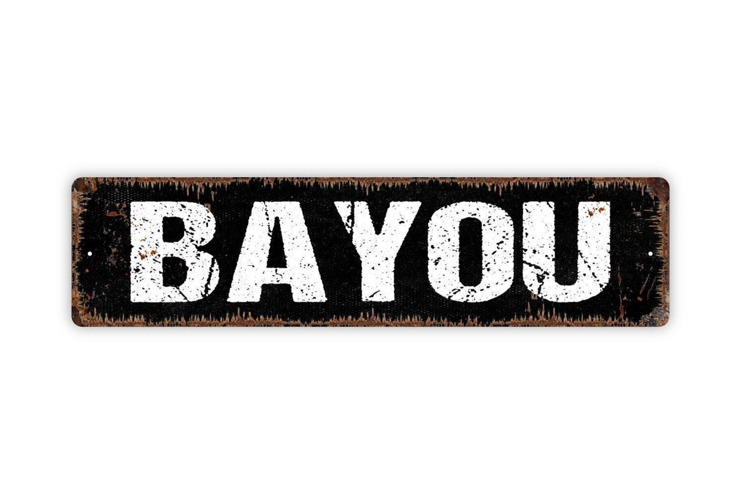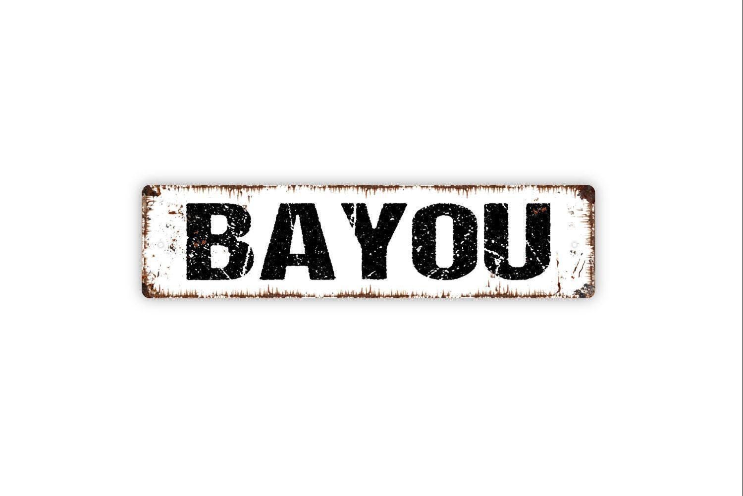 Bayou Sign - Marsh Land Swamp Lake River Marshy Outlet Vinyl Sticker Or Street Metal Sign or Door Name Plate Plaque