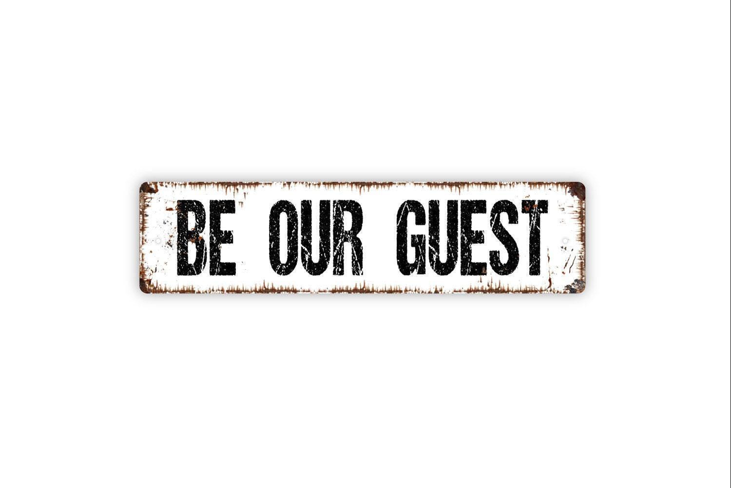 Be Our Guest Sign - Vinyl Sticker Or Metal Street Sign or Door Name Plate Plaque