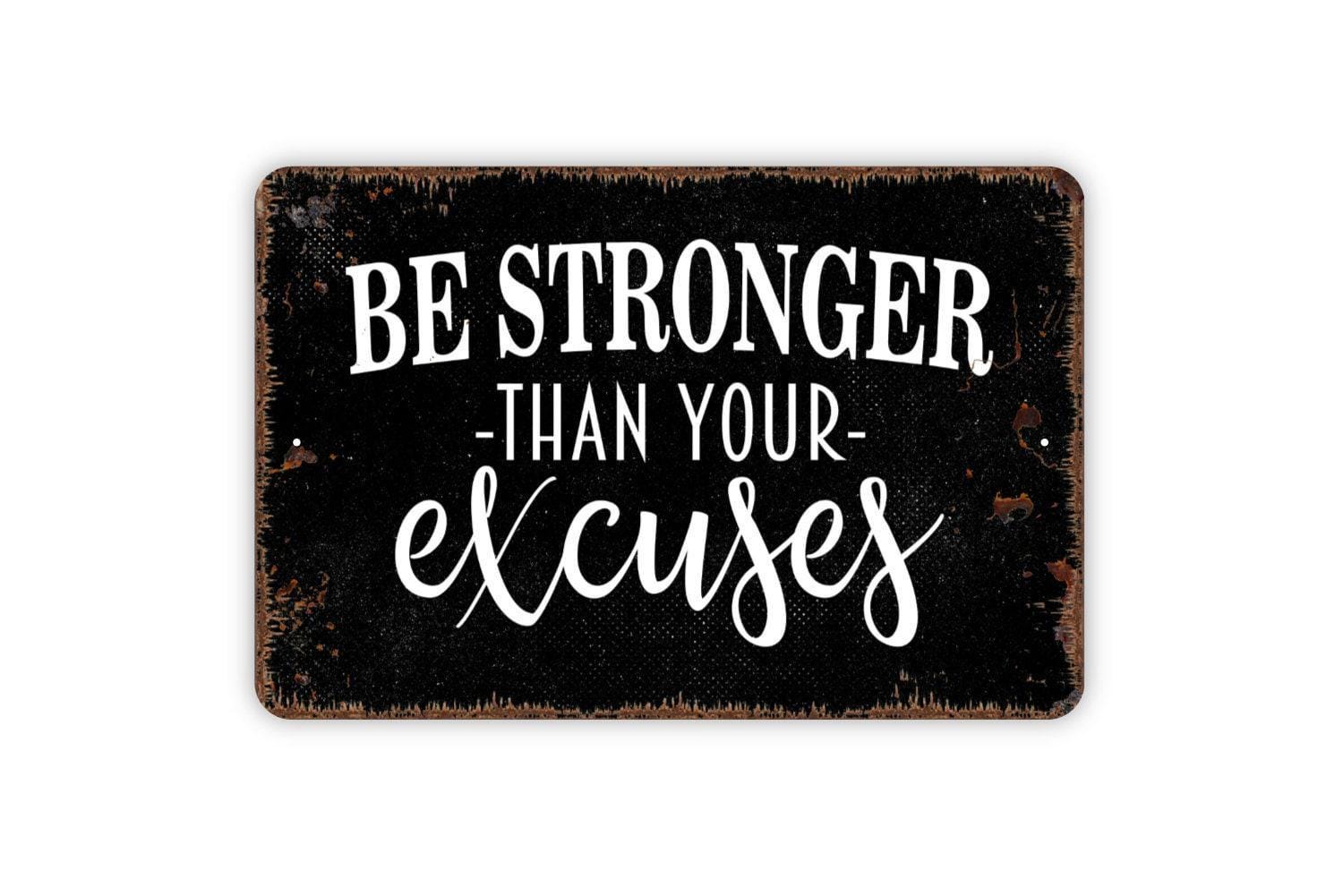 Be Stronger Than Your Excuses Sign - Weight Lifting Fitness Trainer Gym Metal Sign Farmhouse Wall Decor Modern Wall Art