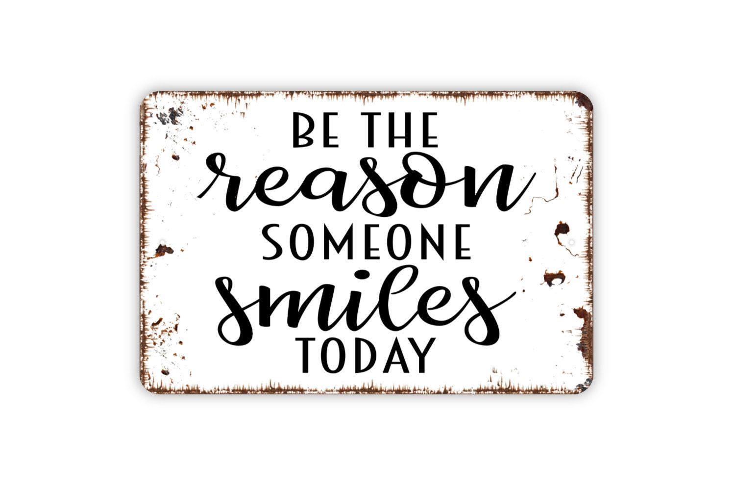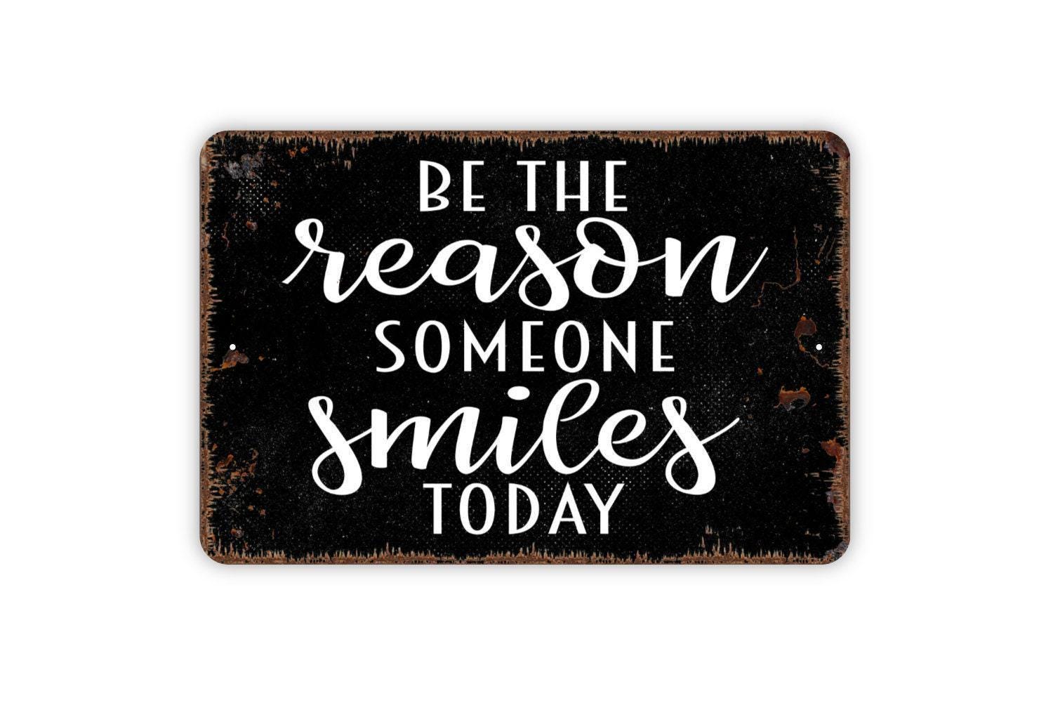 Be The Reason Someone Smiles Today Sign - Farmhouse Contemporary Modern Wall Art Metal Sign