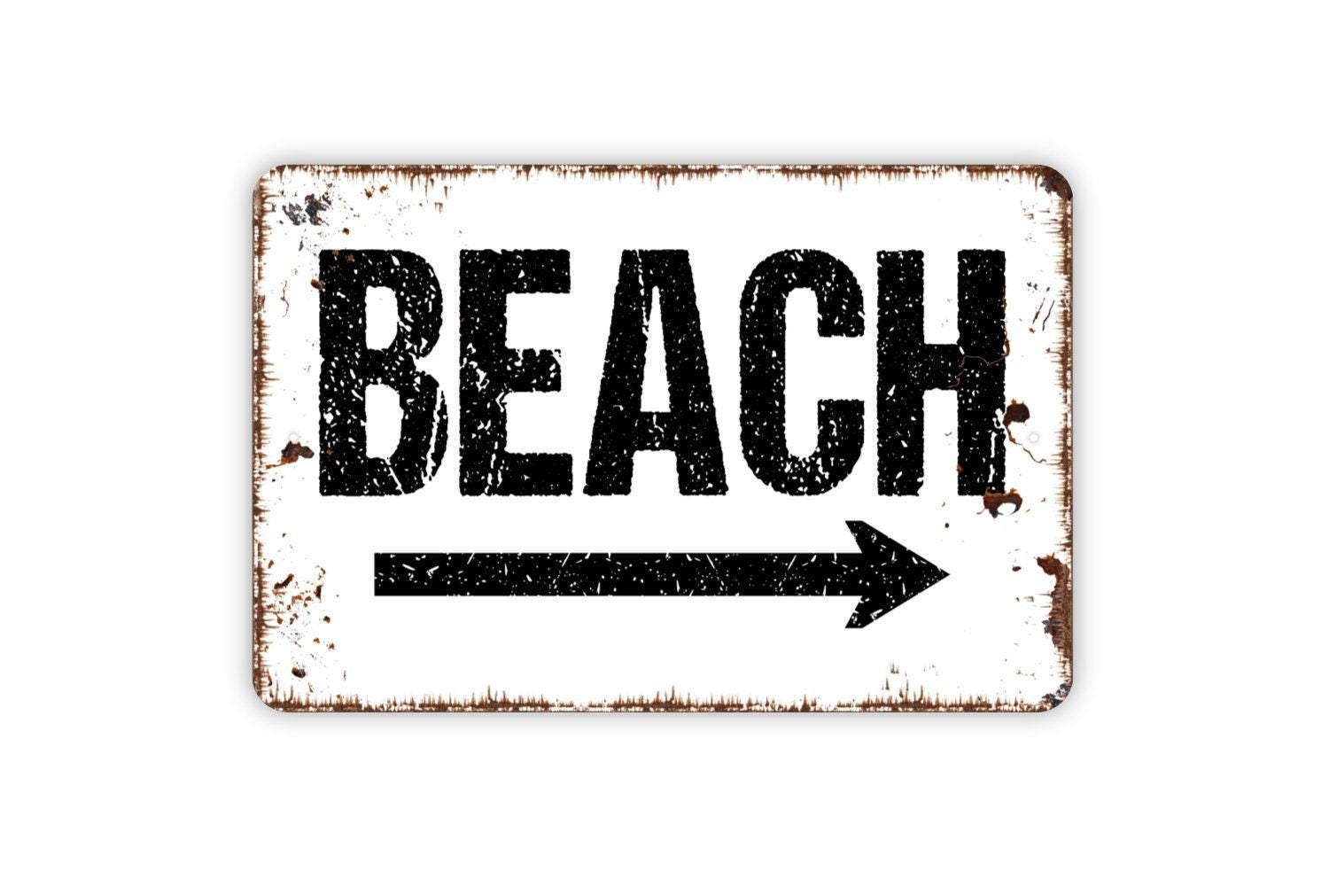Beach Sign with Right or Left Arrow Metal Sign, Farmhouse Style Wall Decor Modern Wall Metal Sign