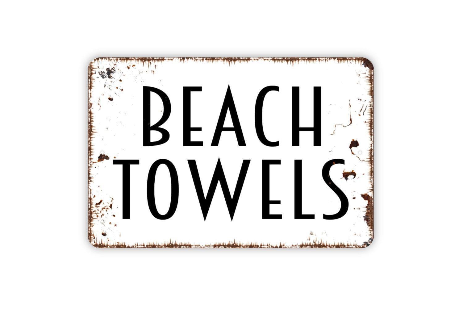 Beach Towels Sign – Coastal Bathroom Poolside Patio Wall Decor – Rustic Farmhouse Beach House Sign – Metal Sign or Sticker