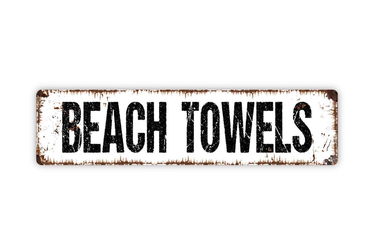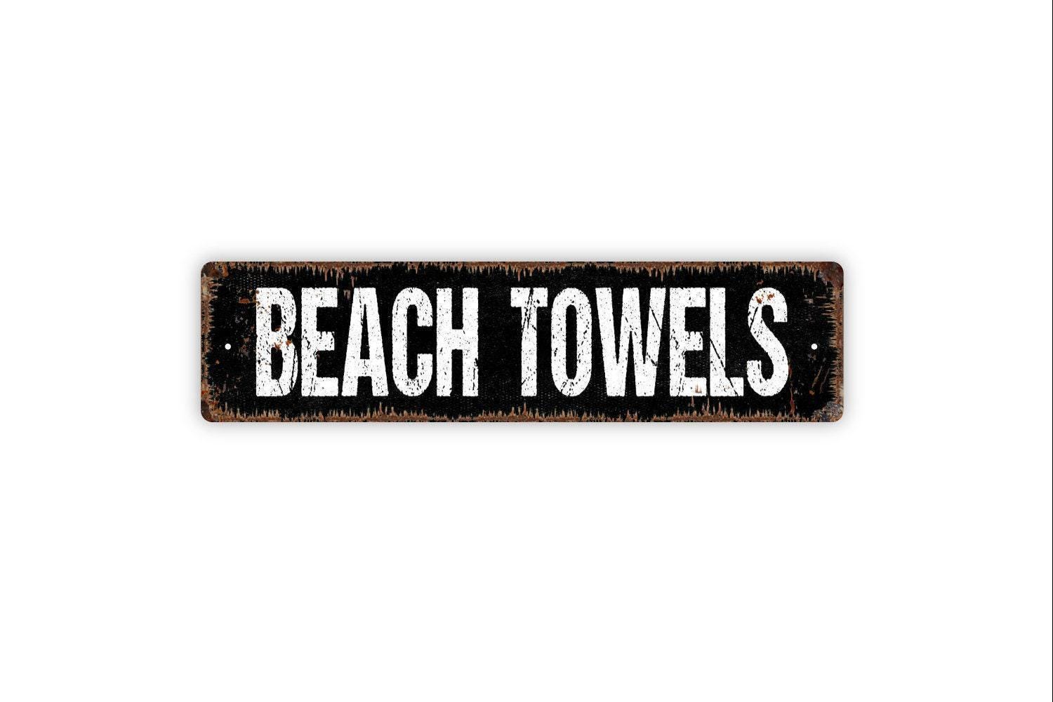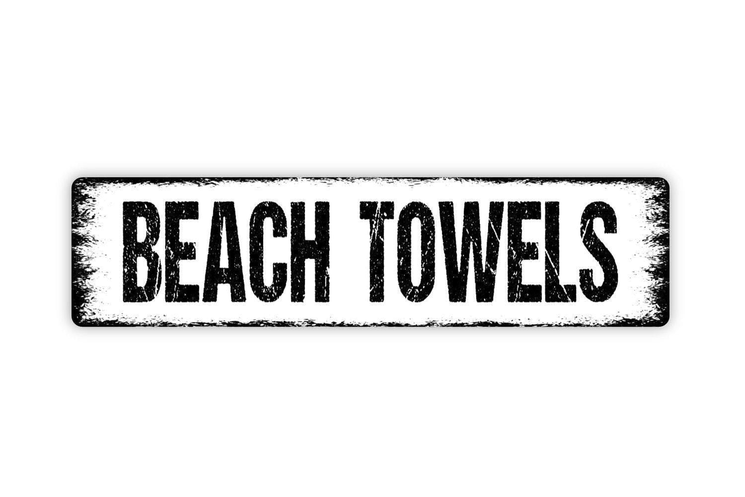 Beach Towels Sign - Swim Sand Surf Ocean Beach House Guest Towels Vinyl Sticker Or Street Metal Sign or Door Name Plate Plaque