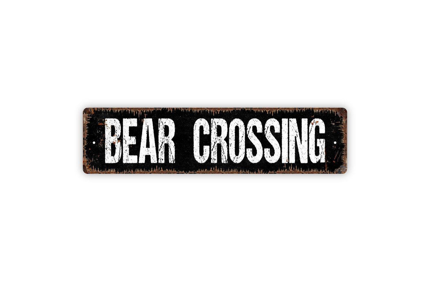Bear Crossing Sign, Funny Woods Forest Animal Metal Sign, Farmhouse Style Decor, Vinyl Sticker Or Street Sign or Door Name Plate Plaque
