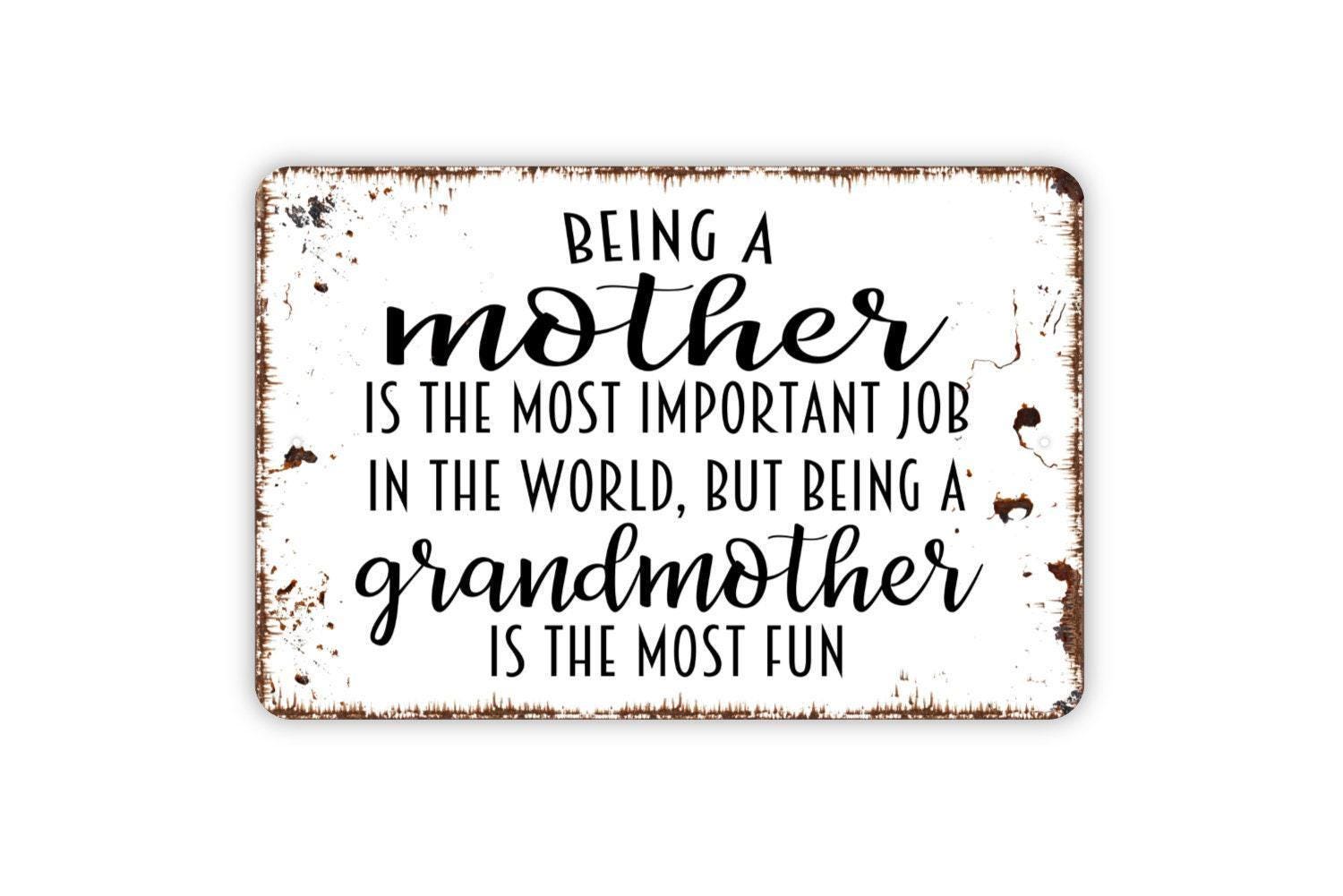 Being A Mother Is The Most Important Job In The World But Being A Grandmother Is The Most Fun Sign - Funny Metal Wall Art
