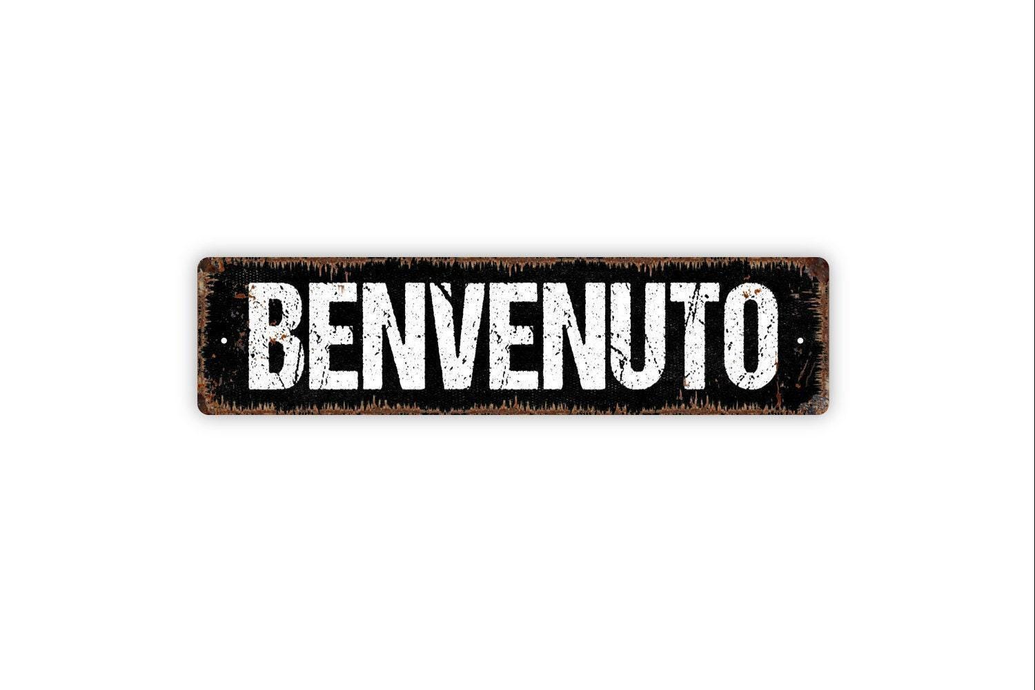 Benvenuto Sign - Welcome Italy Italian Greeting Vinyl Sticker Or Metal Street Sign or Door Name Plate Plaque