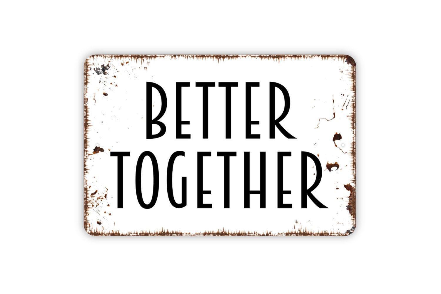 Better Together Sign – Bedroom Wall Art – Rustic Farmhouse Love Quote Sign – Wedding or Anniversary Gift – Metal Sign or Vinyl Sticker
