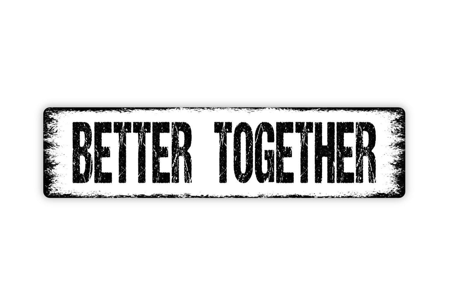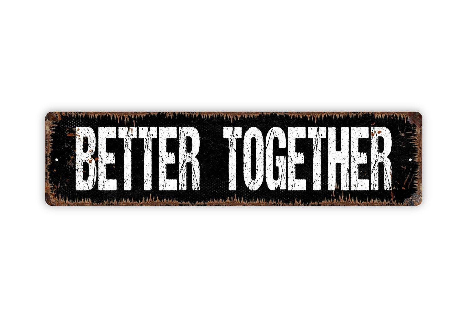 Better Together Sign - Family Happily Ever After Housewarming Gift Wedding Anniversary Rustic Street Metal Sign or Door Name Plate Plaque