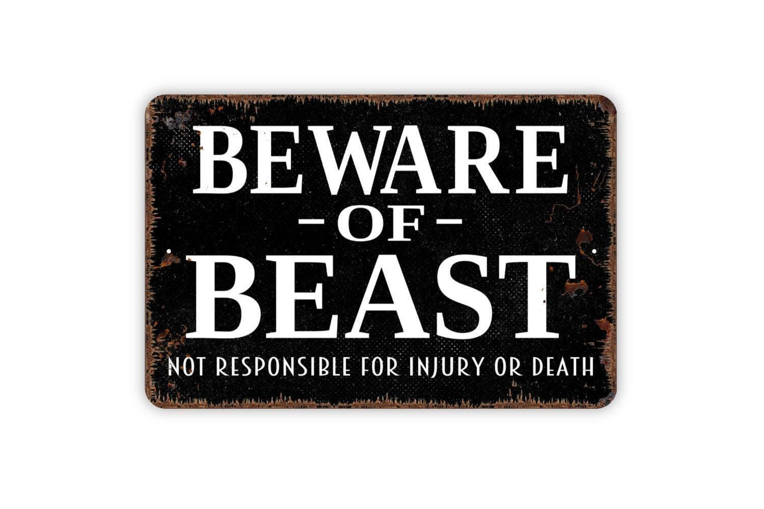 Beware Of Beast Sign - Funny Dog Metal Wall Art - Indoor or Outdoor