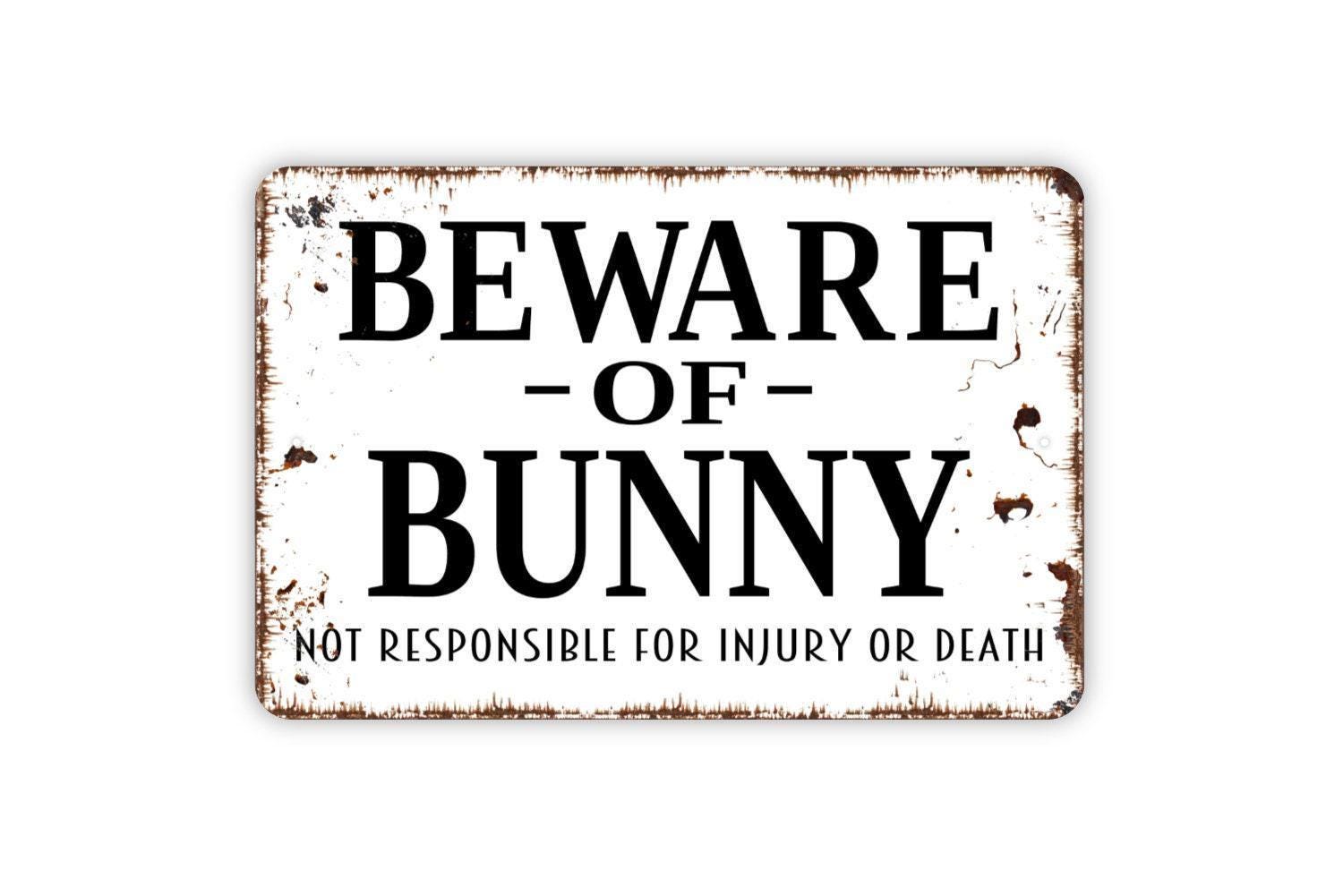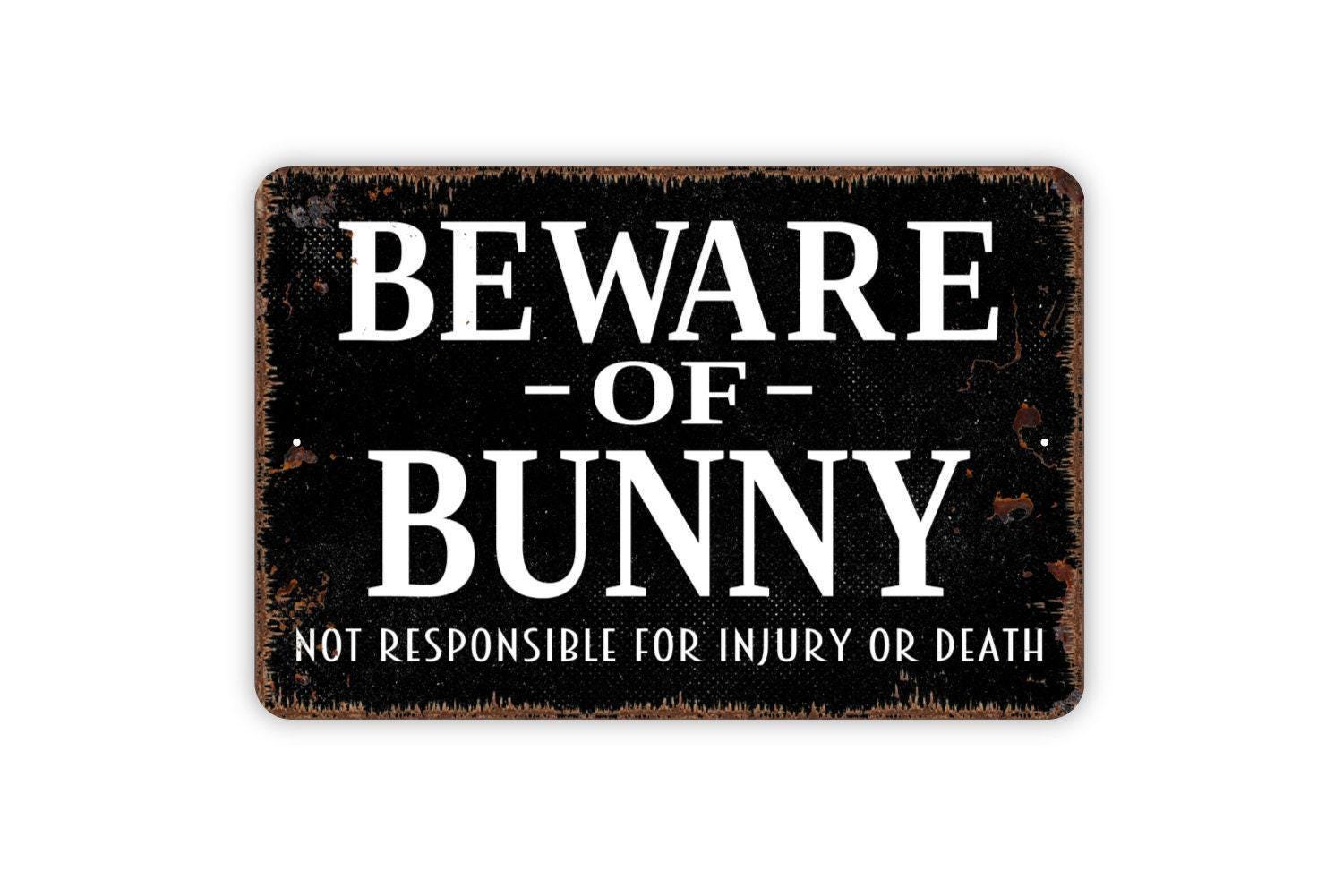 Beware of Bunny Sign | Funny Pet Wall Decor | Metal Sign or Vinyl Sticker for Rabbit Owners, Hutches, Yards, or Homes