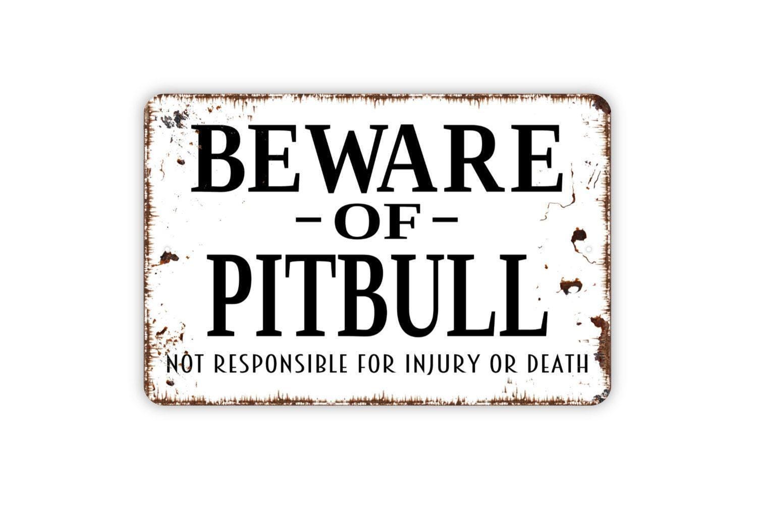 Beware of Pitbull Not Responsible for Injury or Death Sign | Rustic Warning Wall Sign for Yard, Fence, or Home | Metal Sign or Vinyl Sticker
