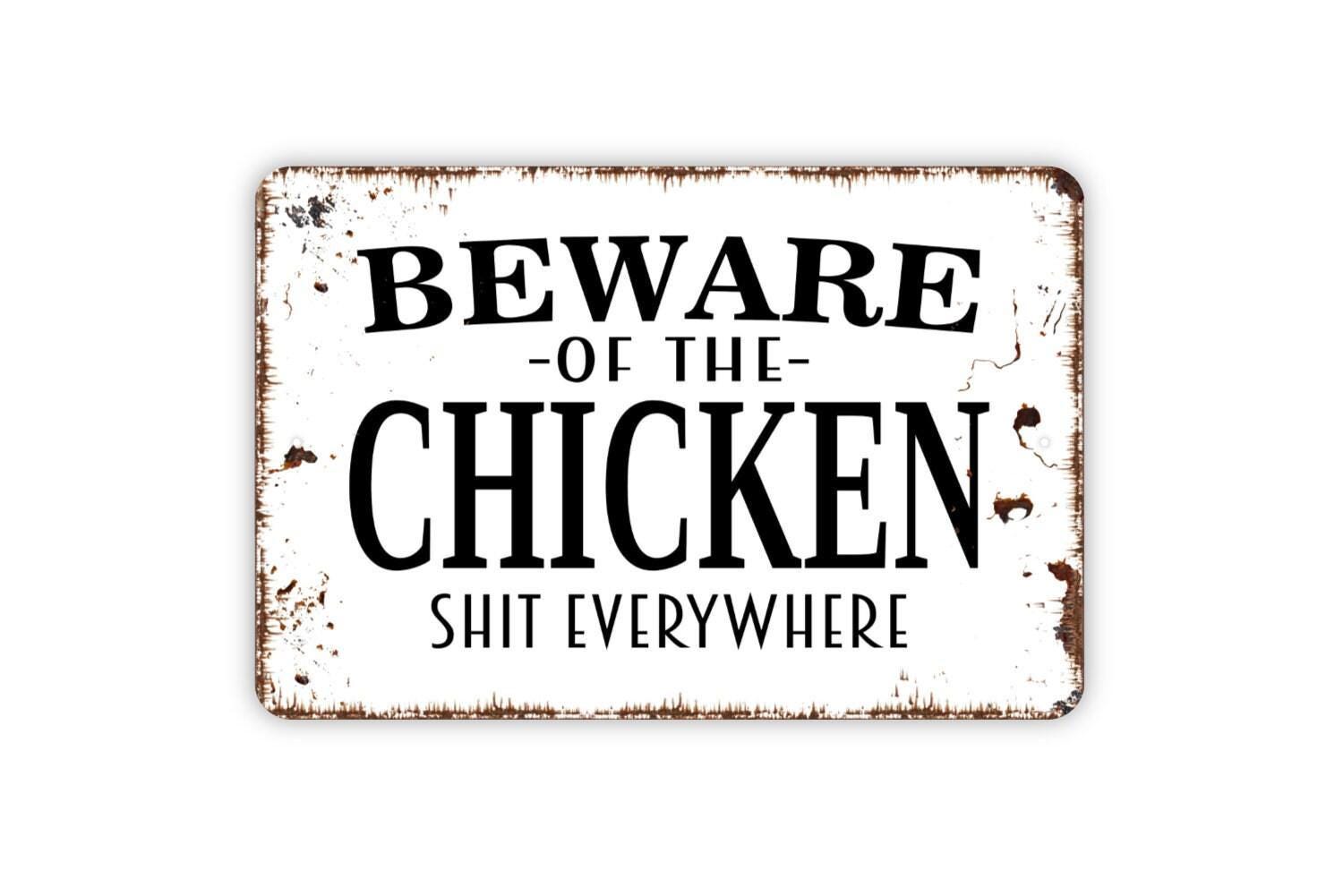 Beware Of The Chicken Shit Everywhere Sign, Funny Rooster Farm Metal Sign For Restaurant, Small Business, Pub Bar Bathroom Sign