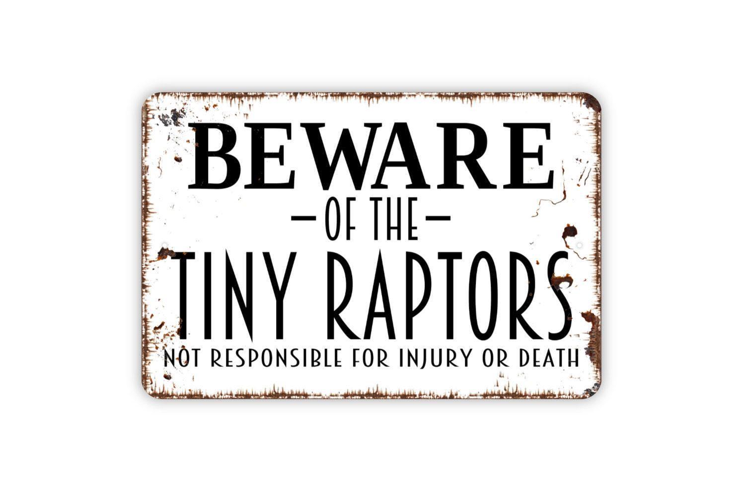 Beware Of The Tiny Raptors Sign Metal or Vinyl Sticker | Funny Chicken Coop Sign | Rustic Farm Decor | Backyard Hen House Sign | Poultry