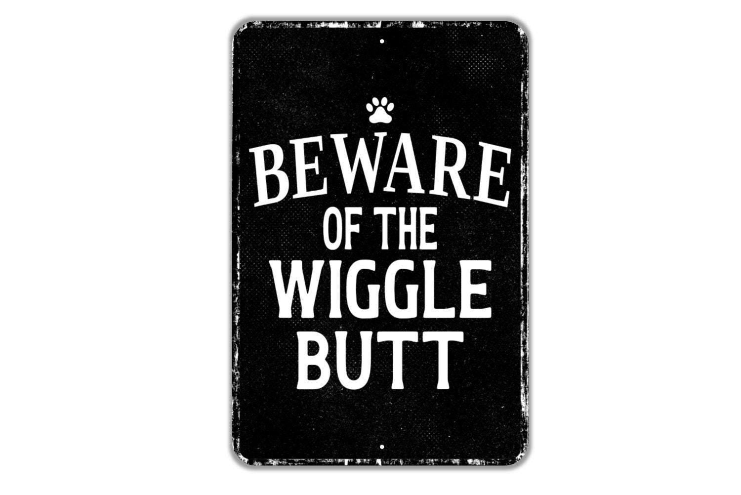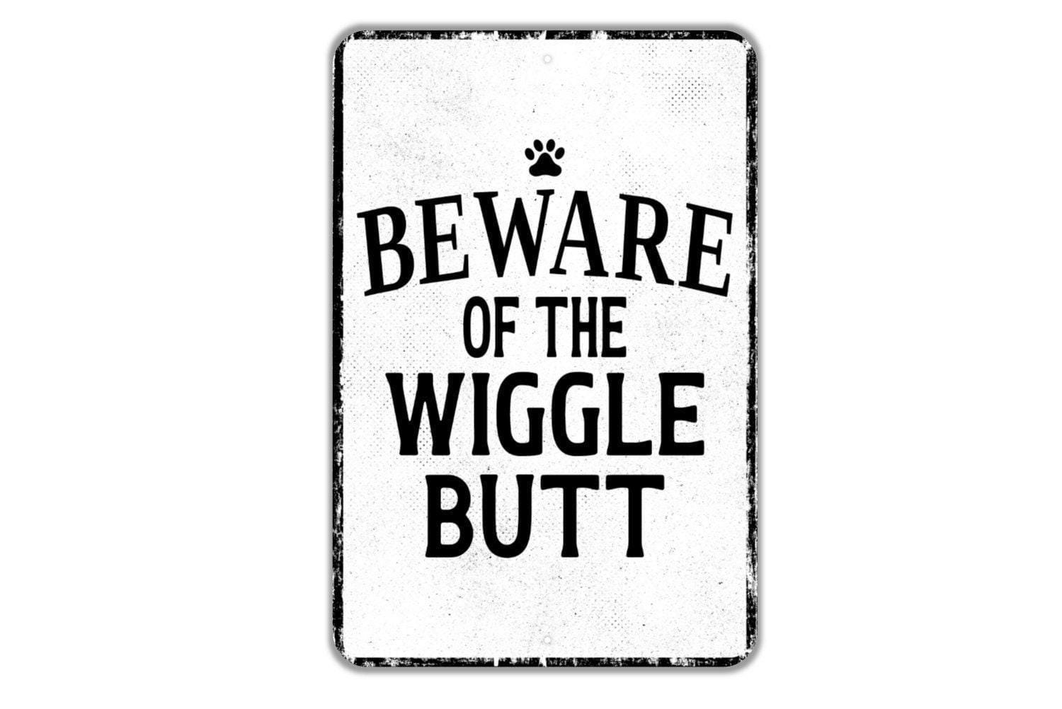 Add playful charm to your home with this Beware of the Wiggle Butt Sign, available in multiple sizes as metal wall art or vinyl stickers. Perfect for fences, porches, and entryways, this funny pet sign is a lighthearted way to celebrate your dog. A great gift for dog owners, puppy parents, and anyone who loves canine humor.