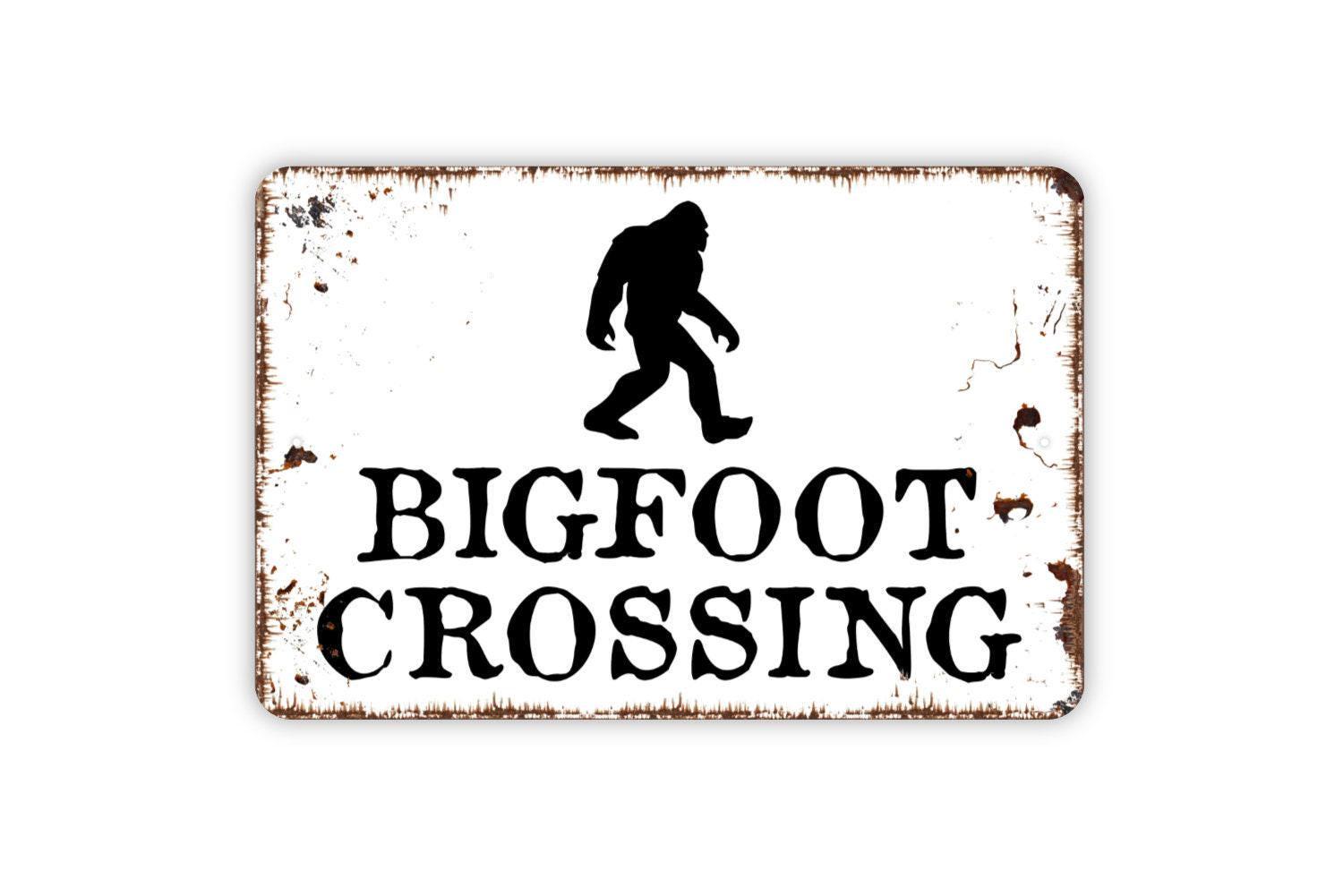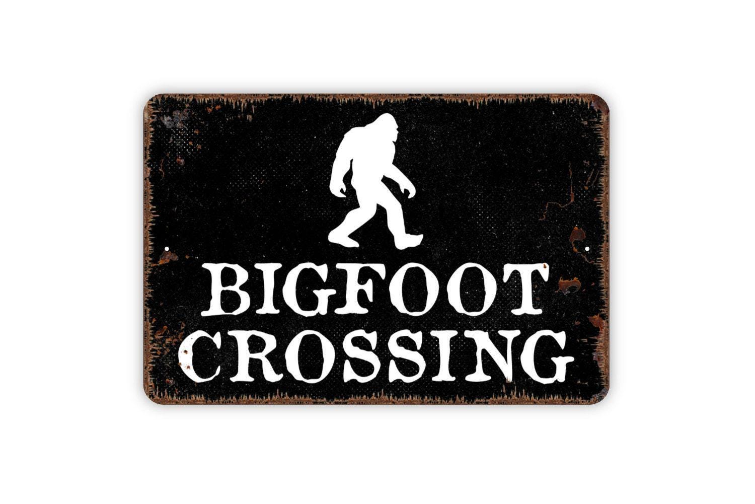 Bigfoot Crossing Sign - Funny Sasquatch Metal Wall Art - Indoor or Outdoor