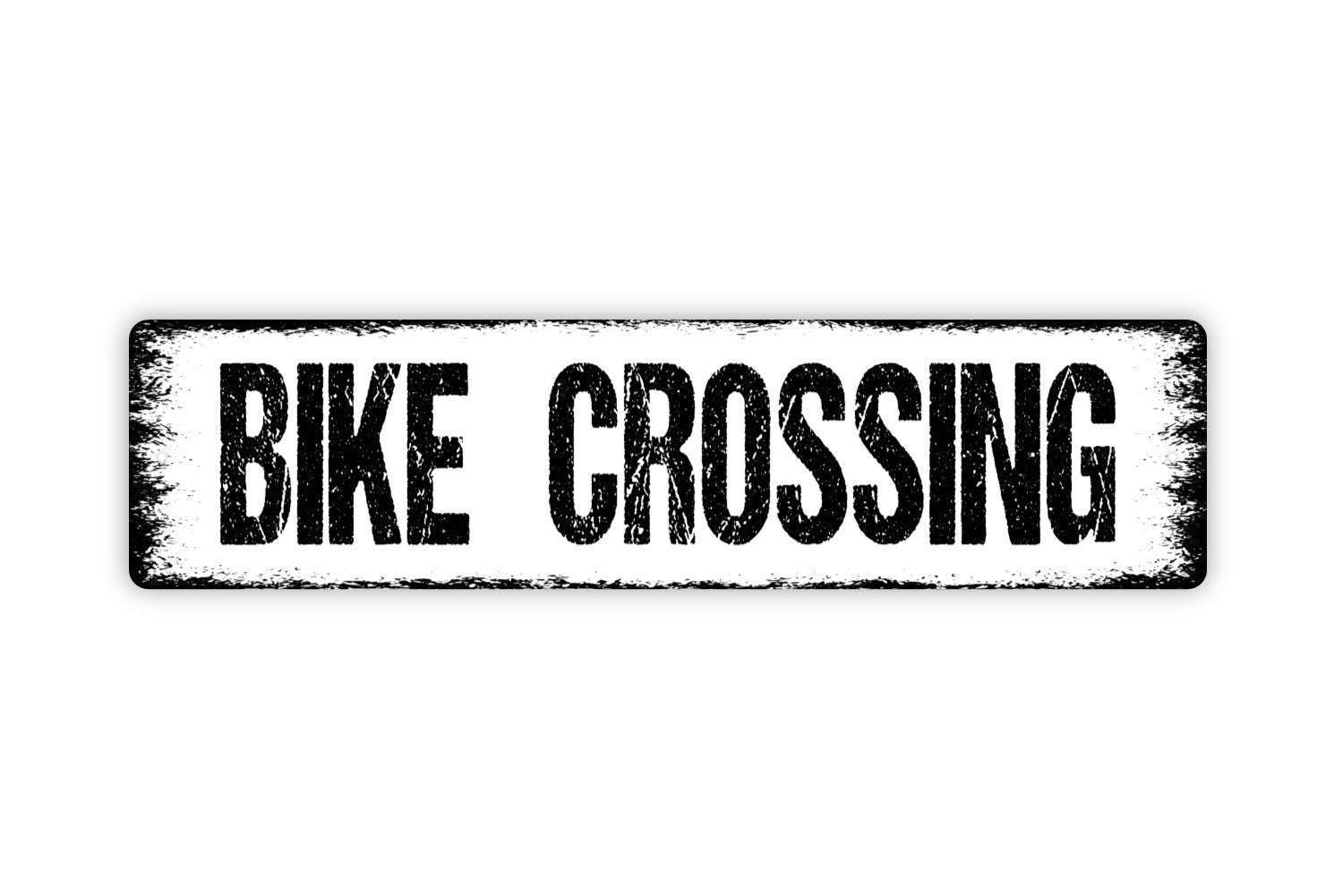 Bike Crossing Sign - Bicycle Path Motorcycle Motorbike Trail Track Street Vinyl Sticker Or Street Metal Sign or Door Name Plate Plaque