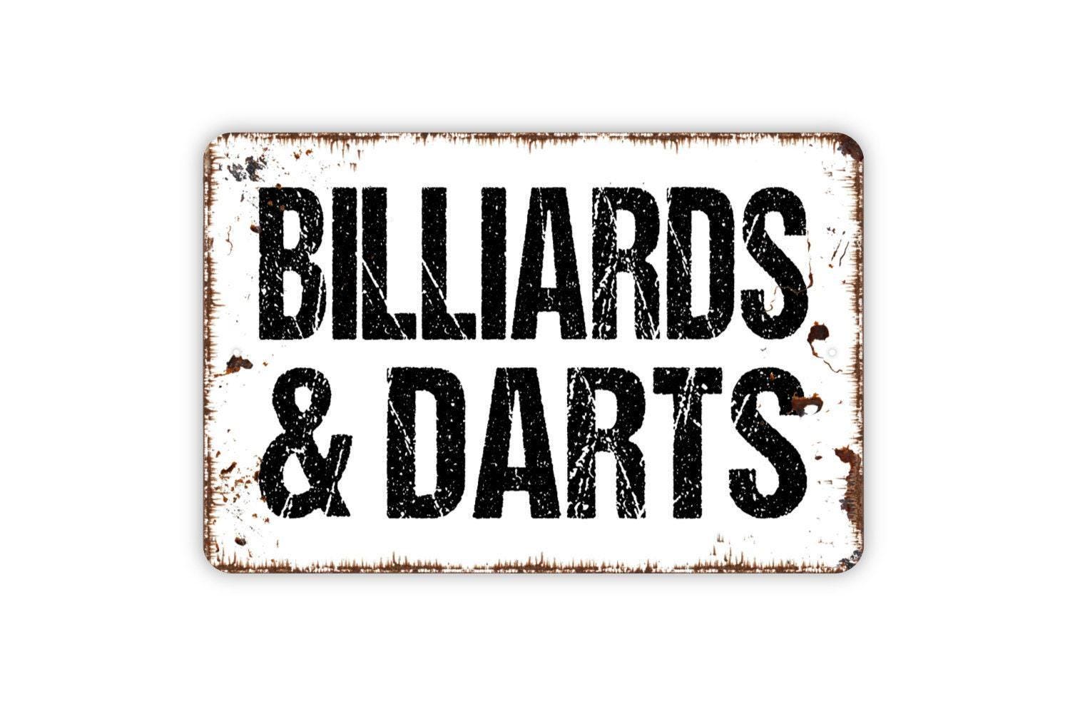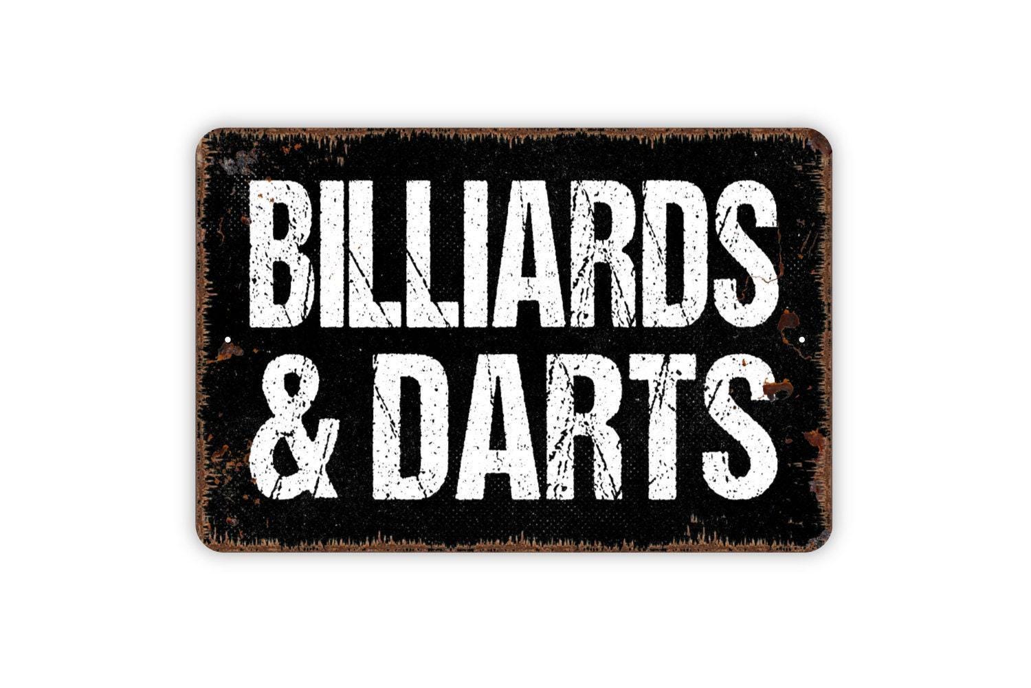 Billiards & Darts Metal Sign - Game Room Metal Wall Art - Indoor or Outdoor