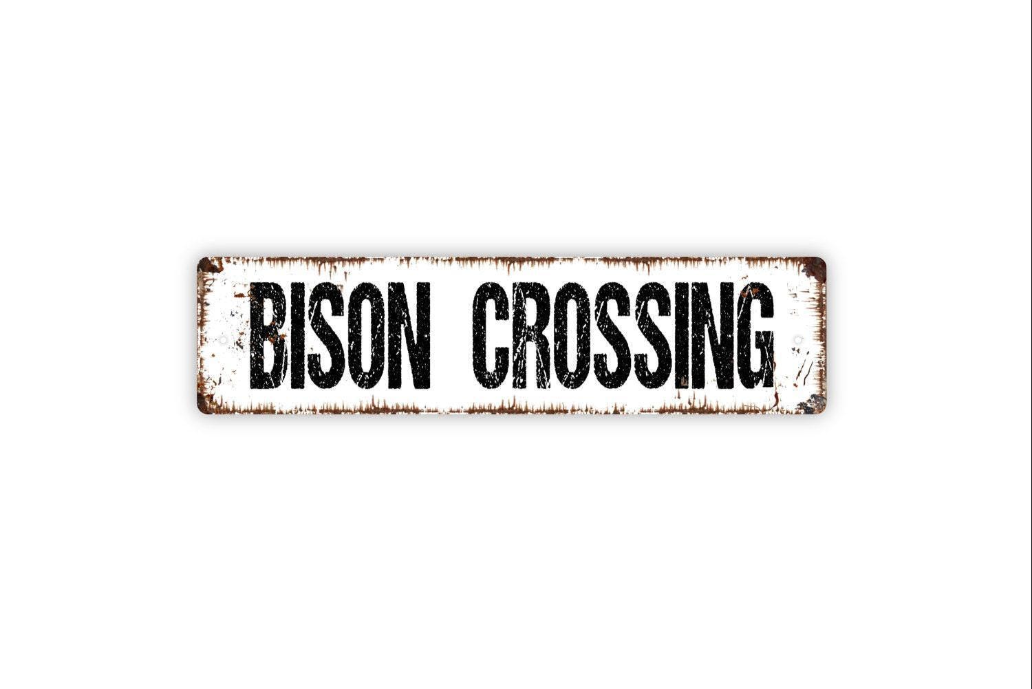 Bison Crossing Sign, Funny Buffalo Ranch Metal Sign, Farmhouse Style Decor, Vinyl Sticker Or Street Sign or Door Name Plate Plaque