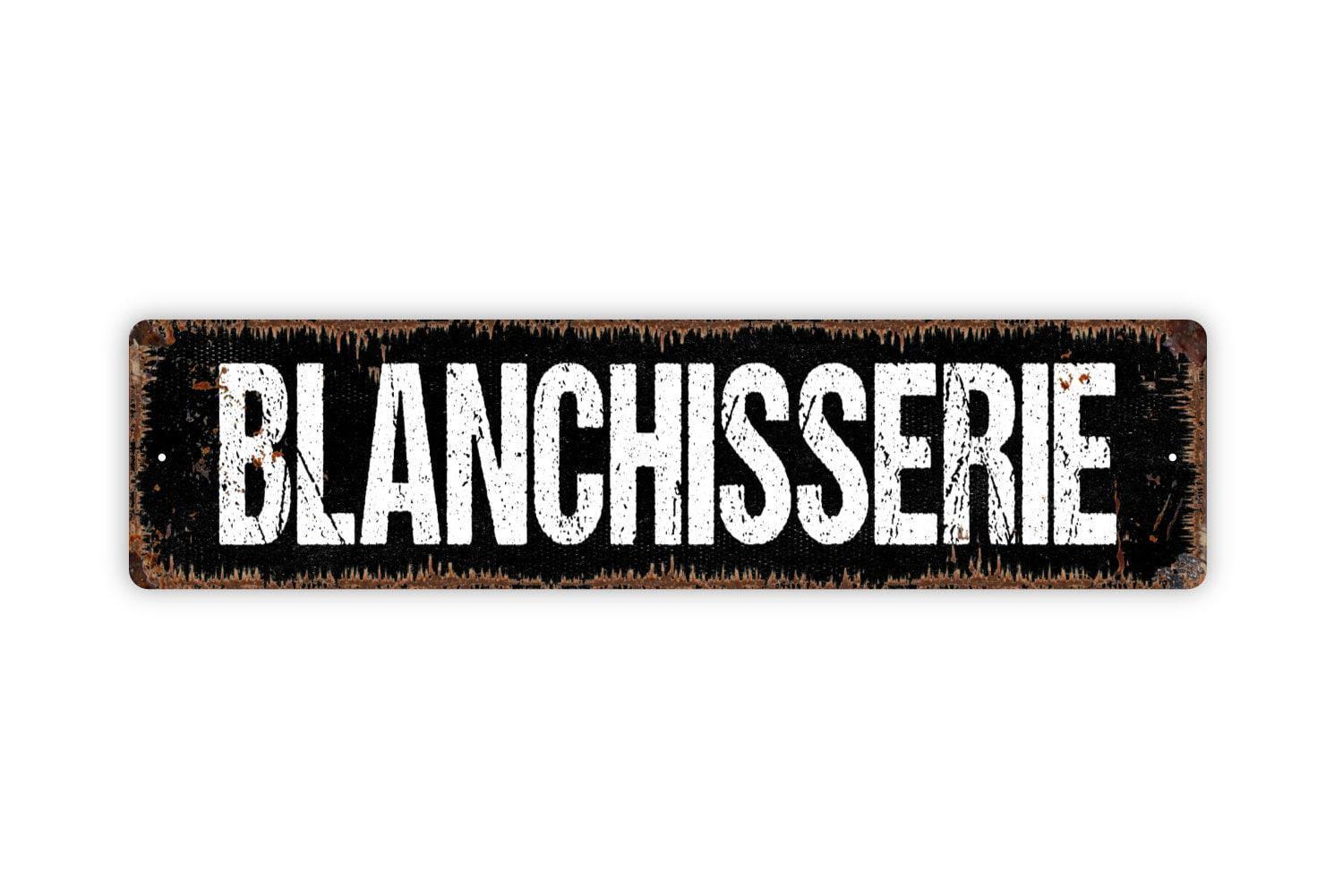Blanchisserie Sign - Laundry Laundromat French Wash Dry Fold Vinyl Sticker Or Street Metal Sign or Door Name Plate Plaque