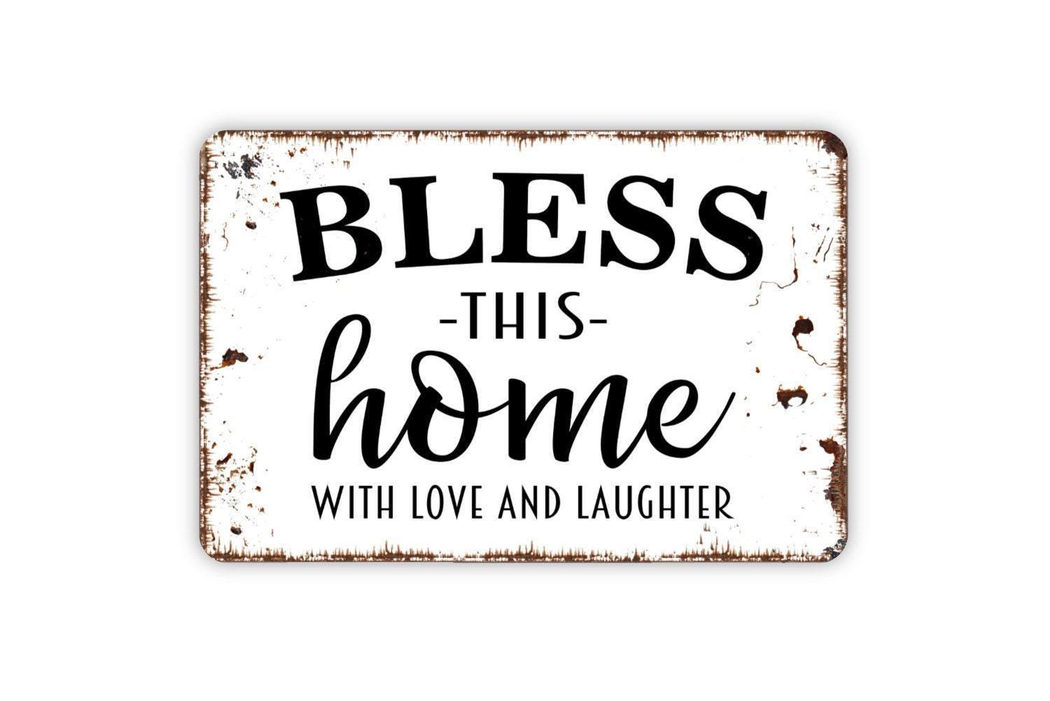 Bless This Home With Love And Laughter Welcome Metal Sign, Farmhouse Contemporary Modern Wall Metal Sign