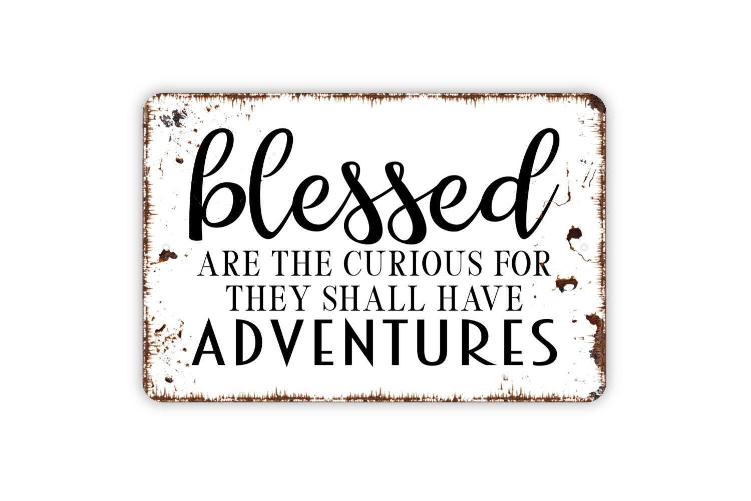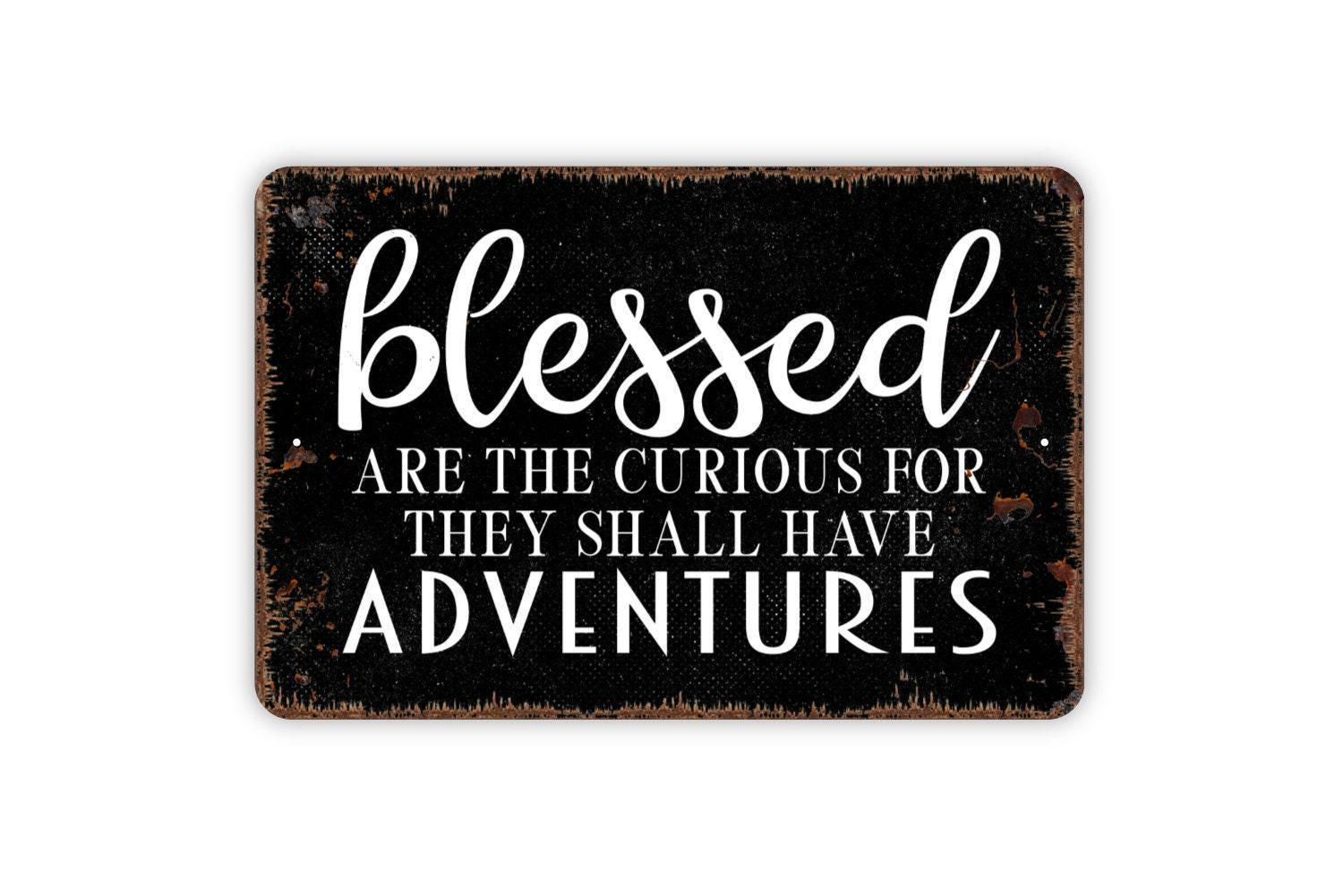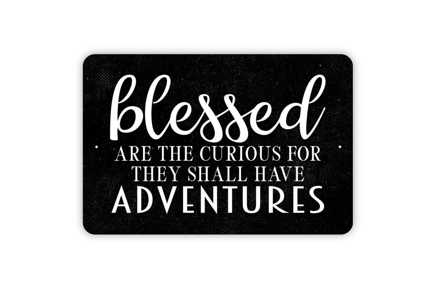 Blessed Are The Curious For They Shall Have Adventures Sign - Metal Indoor or Outdoor Wall Art