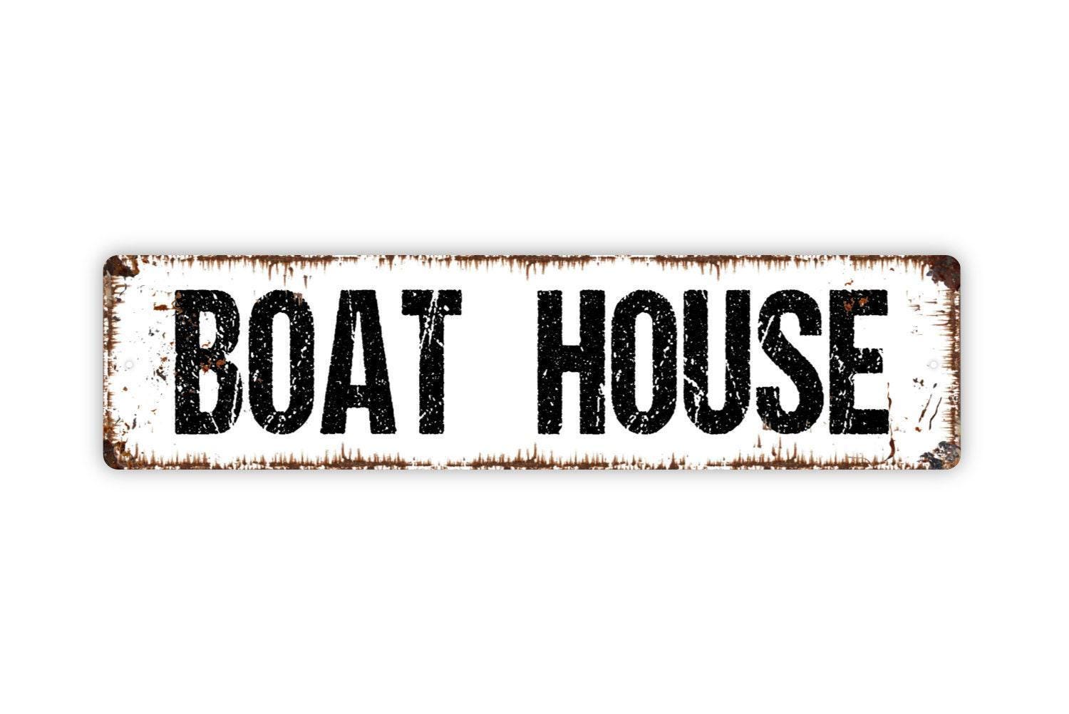 Boat House Sign - Vinyl Sticker Or Metal Street Sign or Door Name Plate Plaque