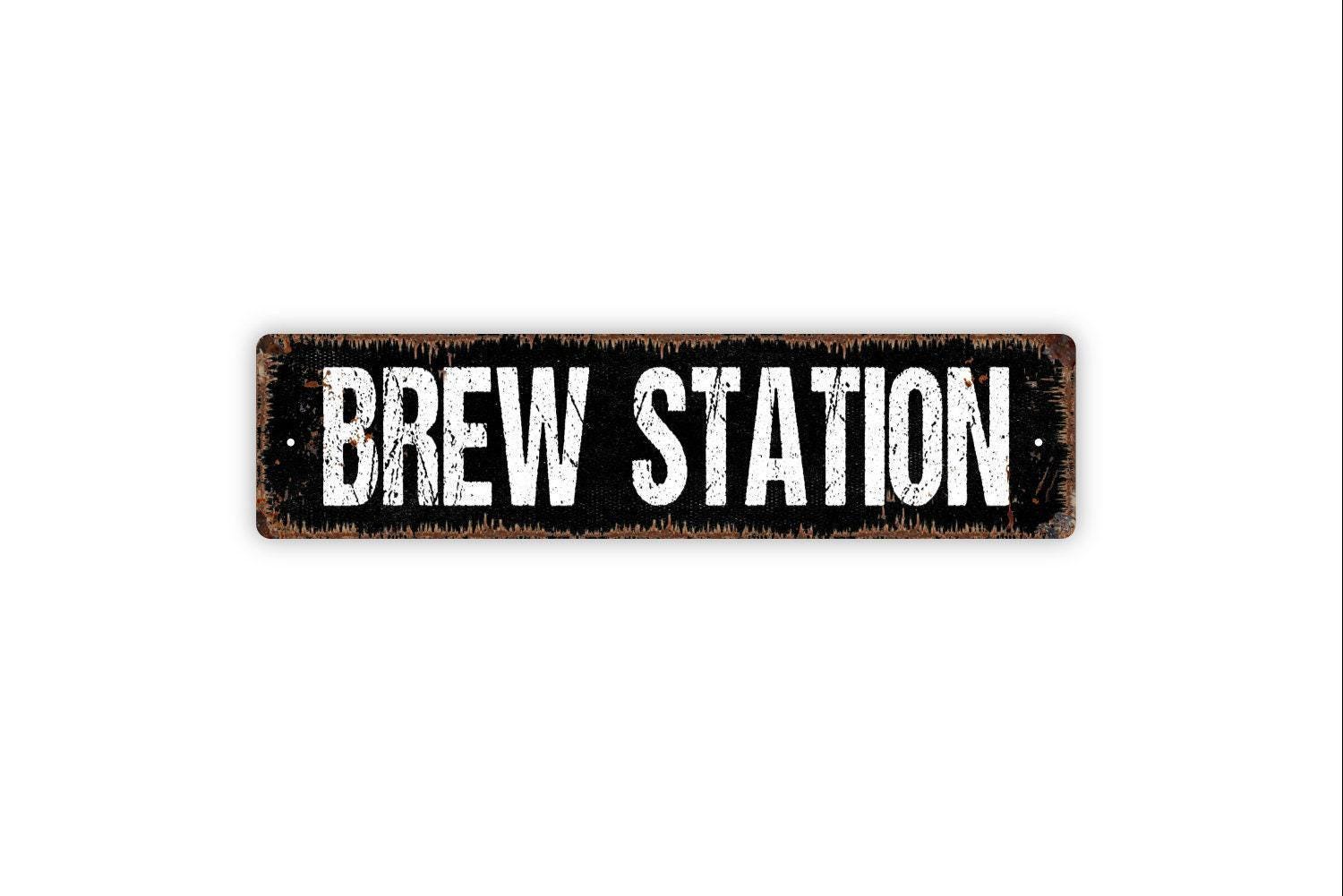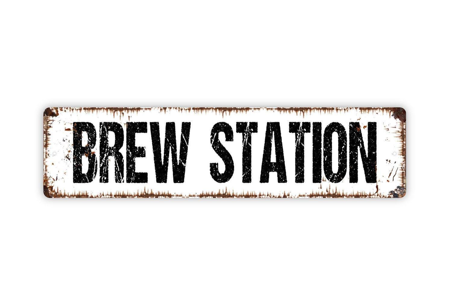 Brew Station Sign - Bar Pub Brewery Tap Room Distillery Vinyl Sticker Or Metal Street Sign or Door Name Plate Plaque