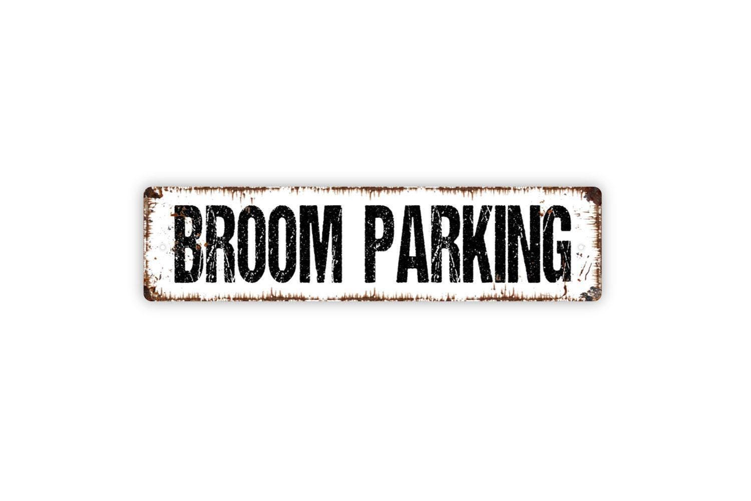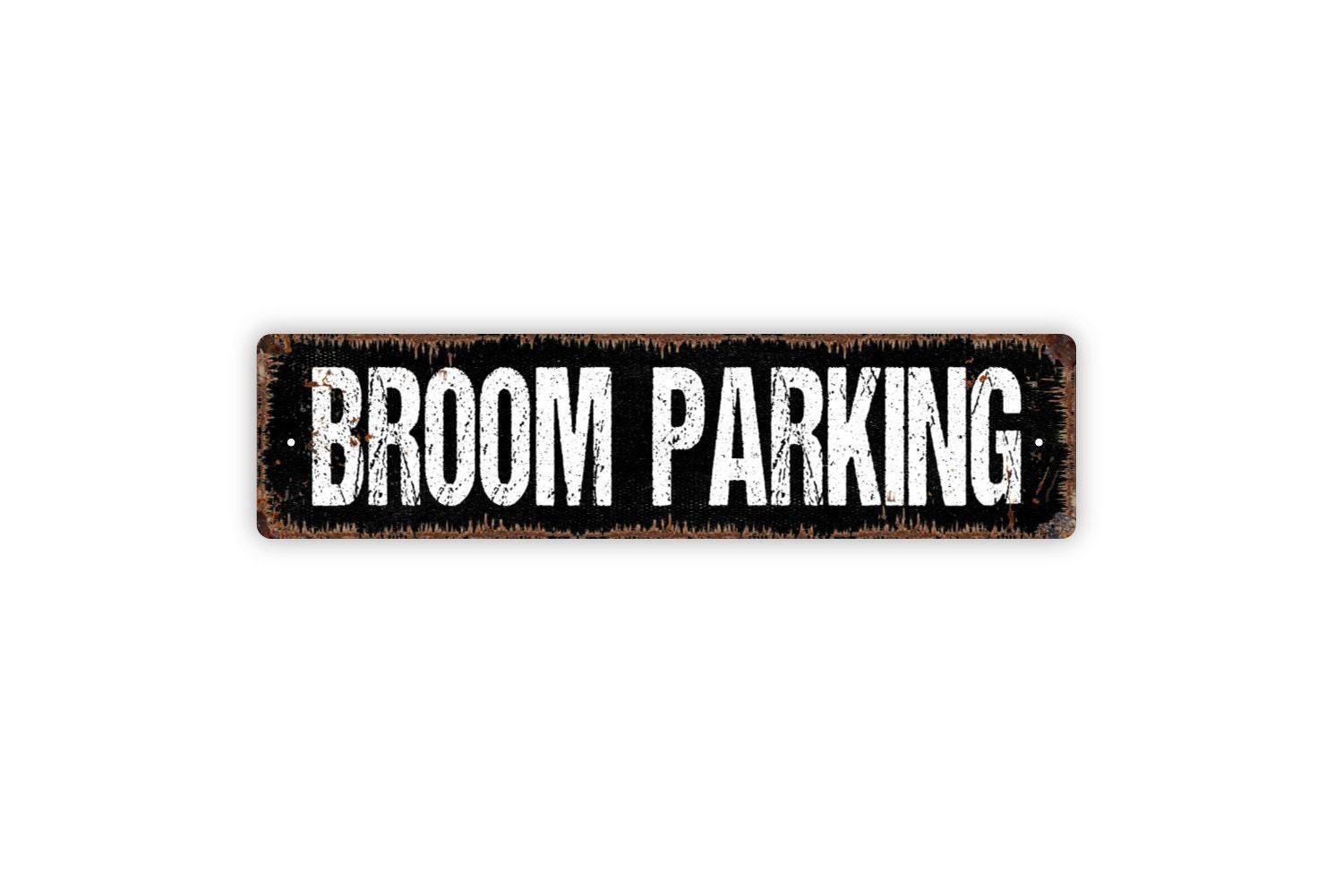 Broom Parking Sign - The Witch Is In Vinyl Sticker Or Metal Street Sign or Door Name Plate Plaque