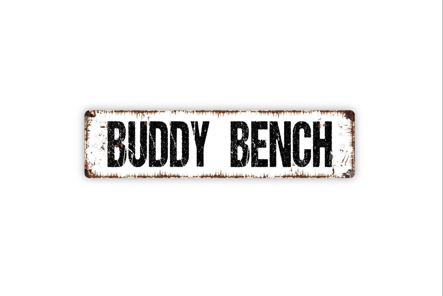 Buddy Bench Sign - Vinyl Sticker Or Custom Metal Street Sign or Door Name Plate Plaque